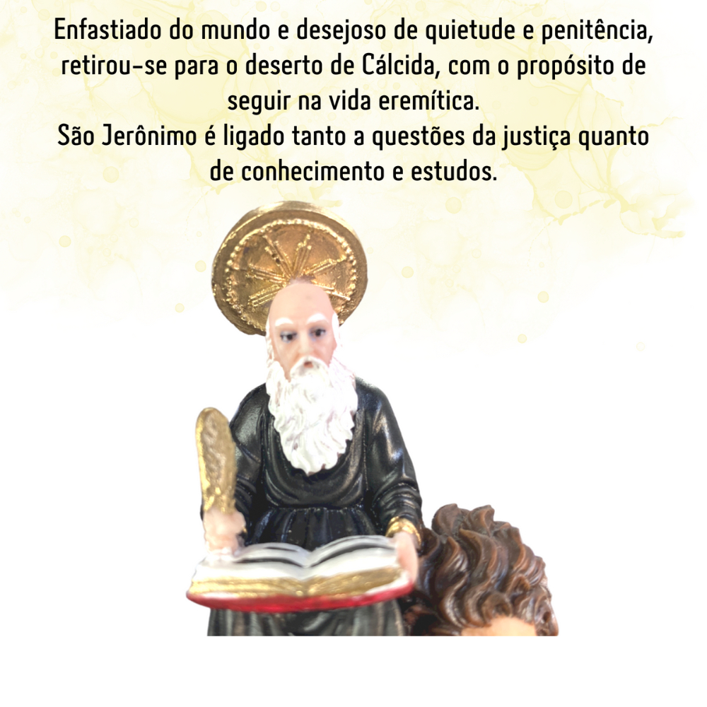 Linda e delicada imagem São Jerônimo Detalhes pintados todos a mão, com riqueza de detalhes e cores. •Embalagem de Envio Caixa de papelão, plastico bolha, isopor entre outros, embalagem conforme necessidade do produto. • Atacado Consulte nossos preços e condições para vendas no atacado. SOMOS FABRICANTES.
