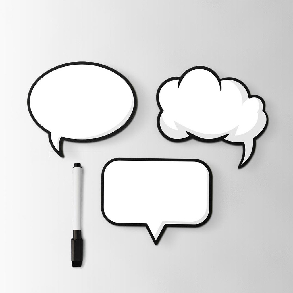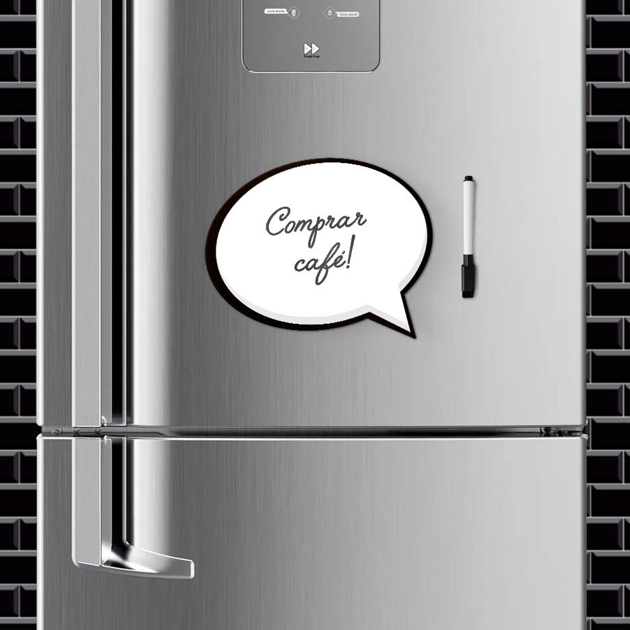 No que você está pensando agora? Com os Ímãs Balões de Diálogo você pode deixar um bilhetinho para alguém especial, anotar algo que precisa comprar, fazer desenhos e o que mais imaginar. Pense, anote, mude de ideia, apague e recrie quantas vezes quiser. CONTEÚDO: 1 Ímãs Balões de Diálogo, medindo aproximadamente 10x8 cm cada. *Acompanha CANETA MAGNÉTICA com apagador. MATERIAL: - MANTA MAGNÉTICA impressa em ALTA DEFINIÇÃO, com recorte especial; - Fixa em qualquer SUPERFÍCIE METÁLICA (geladeira, painel, memory-board, etc.); - Garanta maior durabilidade limpando apenas com um pano umedecido em álcool;