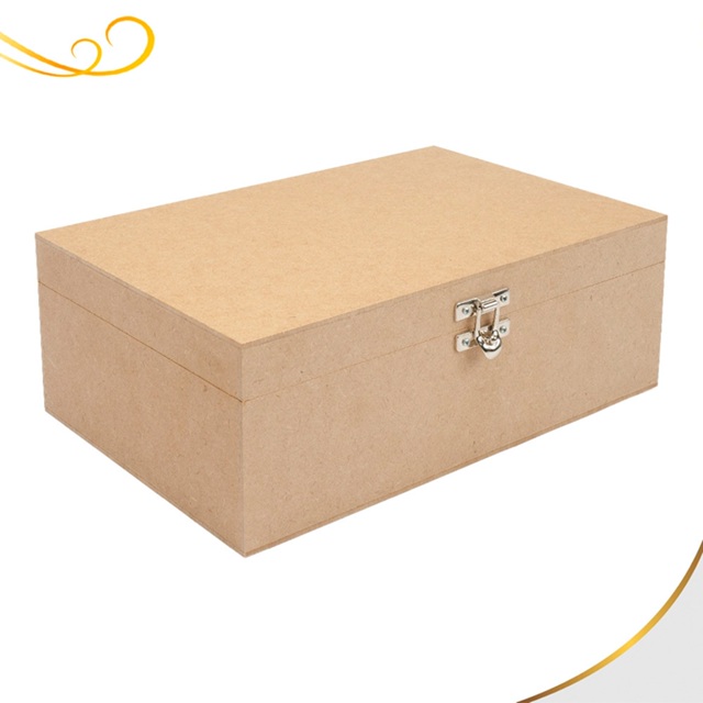 IMPERDÍVEL! Caixa Retangular Lisa Com Fecho 30x20x10 em Mdf Cru