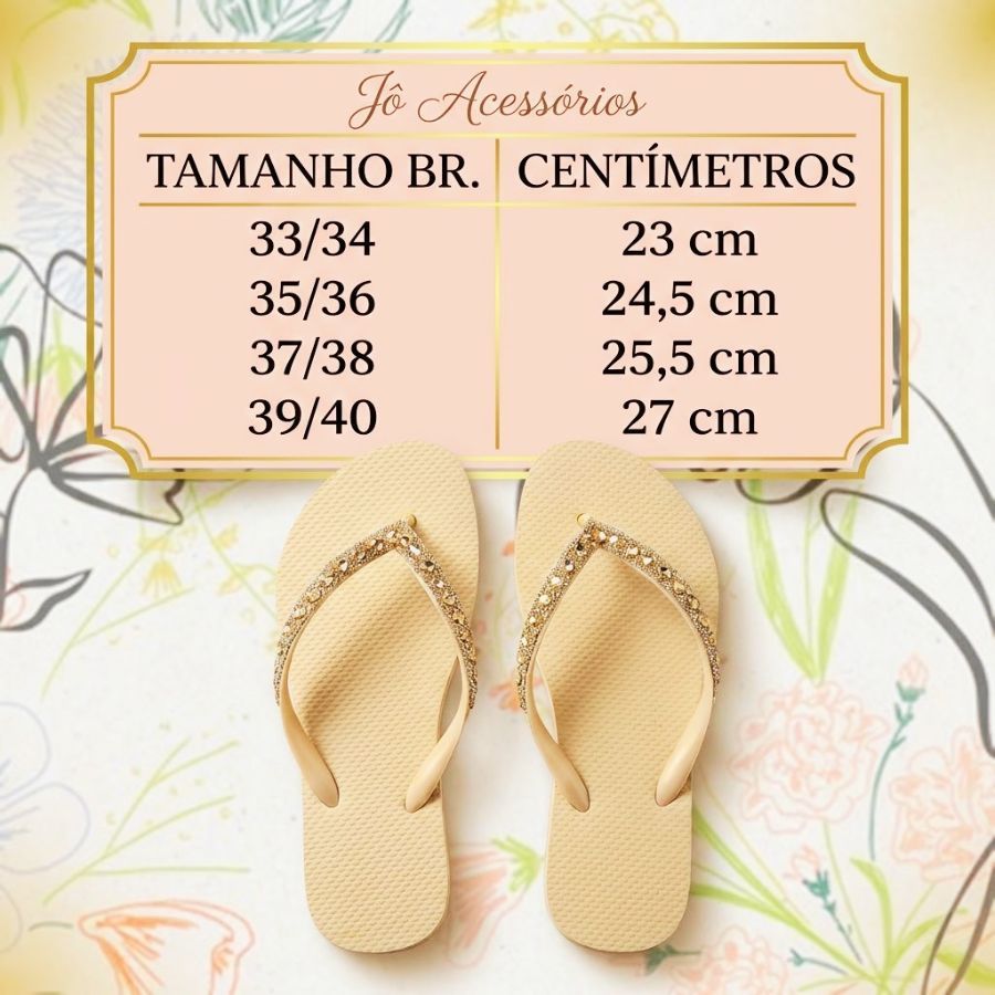 Chinelo Slim Feminino com Strass – Elegância e Conforto para o Dia a Dia O Chinelo Slim Feminino foi desenvolvido para unir conforto, leveza e um toque de sofisticação. Suas tiras finas com aplicação de strass trazem brilho e delicadeza ao visual, deixando seus pés ainda mais bonitos. Confeccionado em micro expandido macio, o modelo proporciona sensação de leveza a cada passo. O solado antiderrapante oferece segurança em diferentes tipos de piso, inclusive molhados. Perfeito para usar em casa, passeios, viagens ou no dia a dia — é aquele calçado que combina conforto e estilo em todas as ocasiões. Especificações do produto Modelo: Slim Material: Micro expandido de alta qualidade Solado: Antiderrapante e seguro Correias finas com strass em cristal Confortável e leve Gênero: Feminino Forma normal Indicado para o dia a dia Dúvidas frequentes Envio imediato após confirmação da compra Grande estoque disponível Garantia total de satisfação Atendimento rápido e personalizado Sobre a Lhg Acessórios Na Lhg Acessórios, trabalhamos para oferecer produtos de qualidade com o melhor custo-benefício. Somos fabricantes, garantindo preços competitivos e atenção em cada detalhe da produção. Todos os nossos produtos passam por inspeção antes do envio, garantindo que você receba sempre o melhor! 💬 Estamos à disposição para tirar suas dúvidas e garantir uma compra segura e satisfatória.