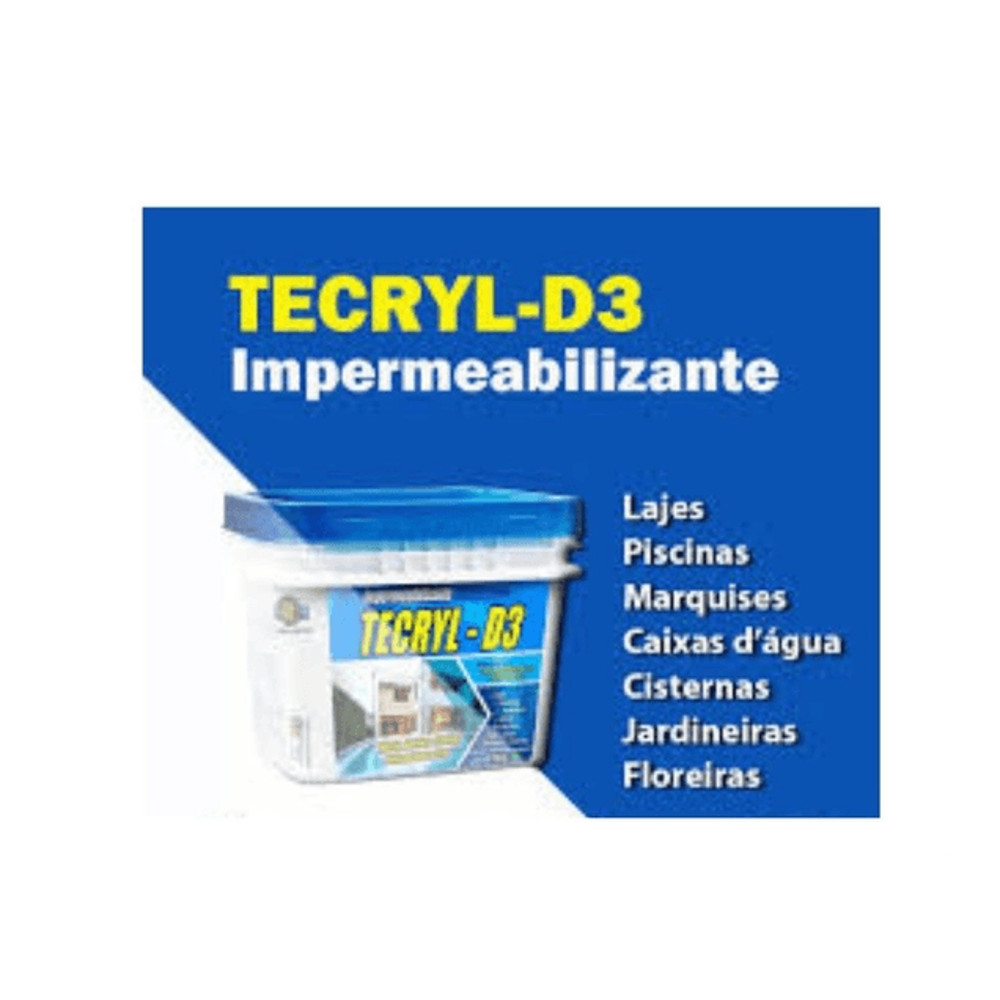 TECRYL - D3 Produto impermeabilizante flexível de base acrílica, aplicável a frio que já vem pronto para uso, eliminando a utilização de maçaricos e caldeiras. Não apresenta qualquer emenda na sua totalidade, não havendo, portando, a existência de pontos fracos ou vulneráveis. Produzido dentro dos mais altos padrões de qualidade, quando aplicado, forma uma manta impermeabilizante de grande aderência, excelente estabilidade térmica e de grande resistência à ação dos raios ultravioletas, após a cura forma uma manta elástica, flexível, suportando eventuais solicitações estruturais, em juntas de dilatação e fissuras. Devido as suas qualidades técnicas, tem sido utilizado nas mais diversas áreas onde as tradicionais mantas tomaram-se ineficazes, conciliando baixo custo, praticidade de aplicação, alta performance e durabilidade. Consumo Apropriado 1 à 2 kg/ m². O cálculo do consumo deve ser aproximadamente 2,0 kg/m² ou 0,5 kg/demão/m². Precisando apenas ser homogeneizado com misturador mecânico ou manual e aplicado com trincha, rolo de lã de carneiro ou pincel, de 2 a 4 demãos cruzadas (1 a 2 kg por m²), conforme indicação da tabela de média de consumo. Intervalo de tempo entre as demãos está ligado às condições de intemperismo do local. Normalmente, o intervalo entre camadas é de 30 a 40 minutos em dias arejados. Não é indicado a aplicação em dias chuvosos, exceto em áreas cobertas, resguardando o tempo entre a aplicação e as demãos seguintes devido à secagem do produto que será mais demorada. Obs: Nos rodapés, a tela deverá subir mínimo de 20 centímetros. Superfície As superfícies deverão estar limpas e completamente secas, isentas de partículas soltas, pedriscos, graxas, óleos, poeiras, pontas de ferro e qualquer outra substancia que possa interferir na aderência do produto ao substrato. Se tratando de superfícies novas (concretagem) a mesma deverá estar totalmente curada, no mínimo de 28 dias e reboco mínimo de 10 dias. Existindo pequenas fissuras, juntas de dilatações, junções de lajes, superfícies sujeitas a pressão hidrostática, ralos, meias-canas e lajes acima de 50m², é indispensável o uso da tela de poliéster SUPER TELA TECRYL, entre 1ª e 2ª demão, para estruturar a membrana. Em áreas menores que 50m², deve-se analisar a necessidade da tela em toda área, principalmente se a área estiver sujeita a trincas e movimentações estruturais. Para aplicação em telhas galvanizadas com objetivo de impermeabilizar, cobrir pequenos furos e REDUÇÃO DE CALOR, verifique se as mesmas estão isentas de ferrugem, caso contrário remova toda ferrugem com escova de aço e em seguida limpe bem com pano semi-úmido, espere secar e faça a aplicação, e para aplicação em telhas de fibrocimento, basta remover bem a sujeira e sem seguida fazer a aplicação. O TECRYL D3 é bem resistente a temperaturas quentes do ambiente. A superfície deverá estar regularizada com caimento mínimo de 2% em direção aos ralos, livre de qualquer área sujeita a empoçamento de água. O produto permite a aplicação em superfícies com pequenas irregularidades desde que a recomendação básica seja aplicada, nesta situação o consumo é superior ao estimado e requer uma maior atenção por parte do profissional durante a aplicação. -Nunca aplicar em dia com prognóstico de chuva. Ideal é fazer aplicação em áreas abertas após dois dias de sol consecutivos. -Cura de 24h a 48h em locais arejados e se for em locais fechados, como piscinas e reservatórios suspensos até 7 dias. – Após cura fazer teste de estanqueidade por 72h. -Reservatório e caixa d’água potável, é importante que faça sanitização completa após cura do material e descarte essa água para em seguida abastecê-la novamente. -Aceita assentamentos de argamassas. (ACIII) -Em locais de trânsito, torna-se necessário a execução de piso de proteção. CONTRA INDICAÇÃO -Não aplicar sobre superfícies úmidas, por pressão negativa ou capilaridade. -Não aplicar sobre substratos betuminosos (asfalto) ou com solventes, pisos cerâmicos e pedra. -Não é transitável. Galão de 4 kg IMPERMEABILIZANTE MANTA LÍQUIDA TECRYL D-3 4KG BRANCA