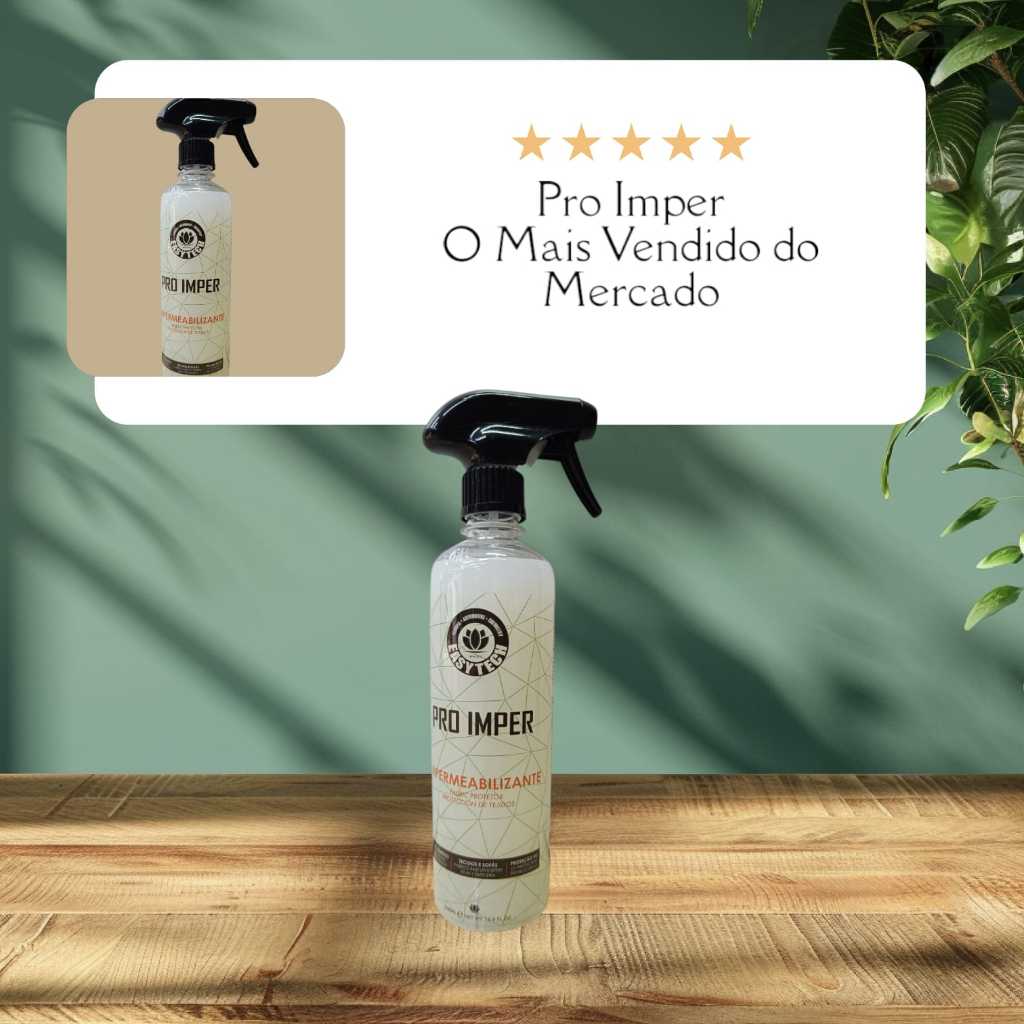 Pro Imper – Impermeabilizante de tecidos base água Pro Imper impermeabilizante de tecidos é um produto a base de água, baixíssimo odor e não inflamável, fabricado com polímeros de Fluor, altamente resistente. Ajuda a preservação de tecidos evitando manchas de líquidos que podem, eventualmente, entrar em contato com o tecido. Dúvidas? Entre em contato Descrição Pro Imper impermeabilizante de tecidos é um produto a base de água, baixíssimo odor e não inflamável, fabricado com polímeros de silício, altamente resistentes. Ajuda a preservação de tecidos evitando manchas de líquidos que podem, eventualmente, entrar em contato com o tecido. Pro Imper é perfeito para ser aplicado em qualquer tipo de tecido: suede, camurça, suede amassado, suede animale, suede brilho, linho, chenile, viscose, seda. Tudo isso com bastante segurança de uma aplicação que não traz riscos a quem aplica, dispensando o uso de impermeabilizantes tóxicos, com solventes inflamáveis que causam riscos graves. Pro Imper pode ser usado tanto por profissionais quanto por um cidadão comum que quer proteger tecidos em sua casa ou escritório. Pode ser usado para proteger sofás, cadeiras, poltronas, roupas, calçados de tecido, bancos de carro, carpetes. Pro Imper vem pronto para uso e deve ser utilizado dentro do rendimento médio de 250ml por m². Jamais deve ser aplicado menos do que o rendimento indicado. Outro fator importante é deixar o produto secar por completo durante 24 horas sem tocar na área aplicada. Qualquer contato vai retirar do tecido parte da proteção do produto. Principais Benefícios Protege por aproximadamente 1 ano; Rendimento médio: 250ml a 300ml por metro quadrado*; Proteção UV; Protege contra líquidos quentes (até 60 graus); Deixa a superfície catiônica, evita proliferação de ácaros e bactérias; Base de água; Leve cheiro; Não é inflamável zero risco na aplicação; Pode ser aplicado em qualquer tipo de tecido: suede, camurça, chenile, viscose, seda, etc. *Este rendimento pode variar de acordo com o tipo de tecido e experiência de quem aplica. Disponível em embalagens de 5L e 500ml.