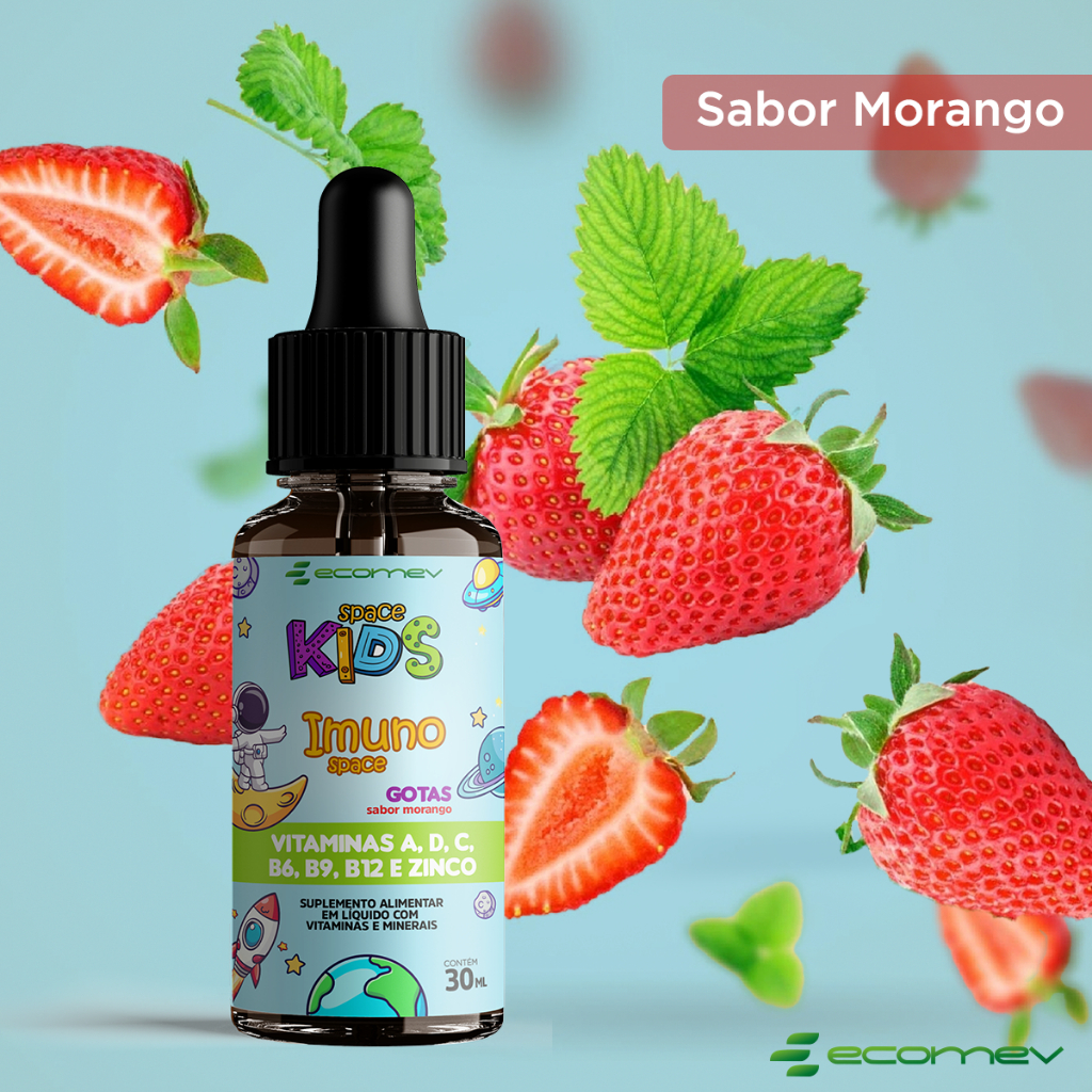 Imuno Kids Vitamina Infantil Vit A D3 C B6 B9 B12 Zinco Em Gotas Sabor Morango 30ML