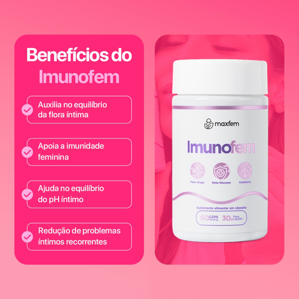 Kit Imunofem + Clareador O Kit Imunofem + Clareador combina suplementação para saúde íntima com cuidado tópico para uniformização do tom da pele, oferecendo uma solução complementar de uso interno e externo. Composição do Kit: 1 unidade de Imunofem 1 unidade de Clareador Imunofem Suplemento alimentar desenvolvido para auxiliar no equilíbrio da flora íntima e no fortalecimento da imunidade feminina. Benefícios: Auxilia no equilíbrio da microbiota íntima Contribui para a redução de recorrências Apoia a saúde íntima feminina Indicado para uso contínuo Clareador Produto de uso tópico formulado para auxiliar na uniformização do tom da pele em áreas específicas. Benefícios: Auxilia na redução do aspecto de escurecimento Contribui para uniformização do tom Textura de fácil aplicação Uso externo Diferenciais do Kit Combinação de cuidado interno e externo Tratamento complementar Melhor custo-benefício na compra conjunta Produto destinado a adultos. Imunofem é suplemento alimentar. Este produto não é medicamento.