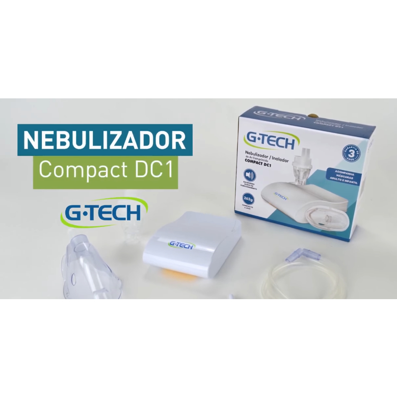 Inalador E Nebulizador Compressor De Ar Comprimido Compact DC1 G-Tech Infantil Adulto - Com Nota fiscal BIVOLT AUTOMÁTICO (100/224V 110/220V) Com Nota fiscal POTÊNCIA, DURABILIDADE E QUALIDADE EXCEPIONAL! O Nebulizador G-TECH Compact DC1 possui design super compacto e leve, facilitando o uso cotidiano e em situações de viagem. Seu baixíssimo nível de ruído, muito menor que os nebulizadores a ar comprimido tradicionais, torna o tratamento mais agradável e adaptável à diferentes idades. SISTEMA SUPERFLOW PLUS - NÉVOA MAIS FINA E EFICAZ A Tecnologia SuperFlow Plus proporciona maior fluxo de névoa e maior quantidade de partículas que alcançam diretamente os pulmões, isso garante que o medicamento está sendo corretamente absorvido no organismo. ITENS INCLUSOS • 01 Nebulizador de Baixo Ruído G-Tech Modelo Compact DC1 • 01 Câmara de nebulização • 05 Filtros de ar (BRINDE) • 01 Máscara adulto • 01 Máscara infantil Com Nota fiscal • 01 Tubo de ar + pino conector • 01 Adaptador de corrente AC/DC • 01 Manual de instruções em português GARANTIA • 03 Anos (Direto com o fabricante G-TECH)
