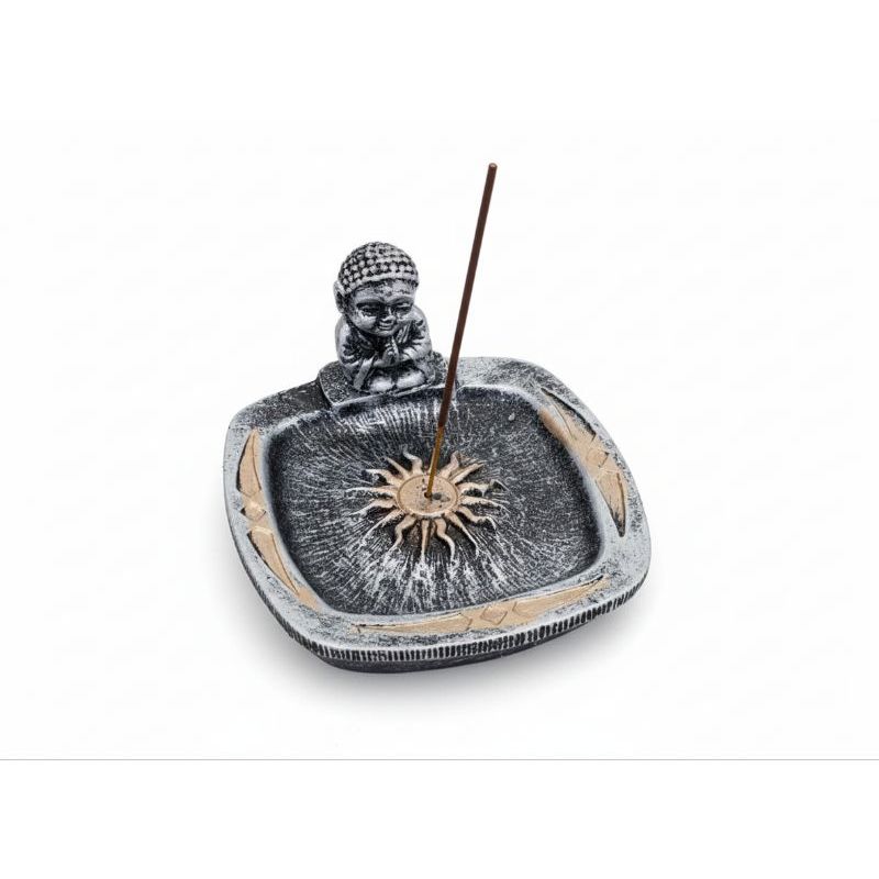 Incensário Pratinho Quadrado Buda em Resina Enfeite Adorno Decoração