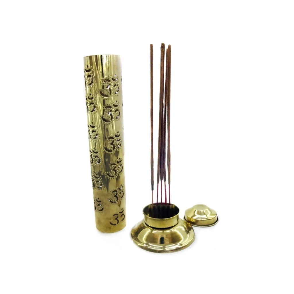 Incensário Torre Metal Dourado Incenso Vareta Palito Com Capacidade Para 5 Incensos