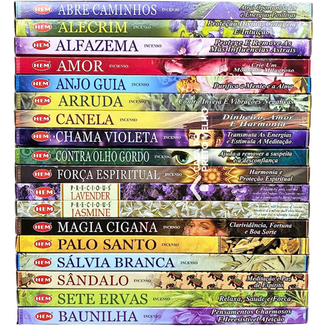 | Incenso Hem 25 caixinhas de 8 varetas cada (5 aromas) este produto | R$ 45,00 | — | 4.9/5 | 139 |