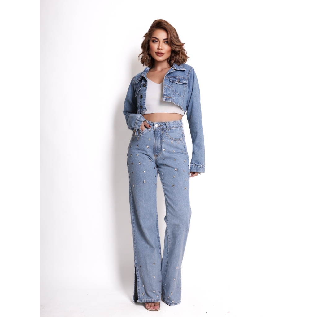 INFINITO MDOA JAQUETA CURTA FEMININA JEANS COM BARRA LISA