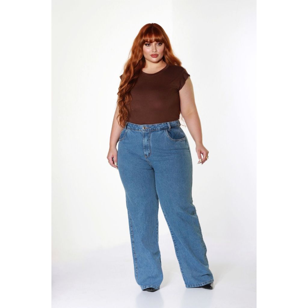 INFINITO MODA Calça Jeans Feminina Wide leg Plus Size Cintura Alta Pantalona Sem Lycra MODA FASHION