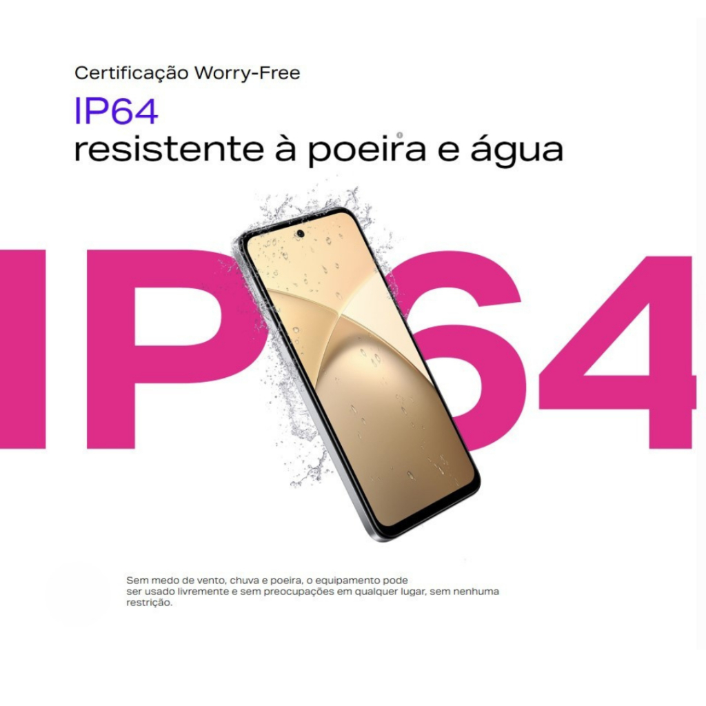 Ficha Técnica – Infinix Smart 10 Plataforma Chipset: T7250 CPU: Octa-core (2x 1,8 GHz Cortex-A75 + 6x 1,6 GHz Cortex-A55) GPU: Mali-G57 MC1 Rede Tecnologia: 2G / 3G / 4G / 4,5G Bandas: - 2G: B2 / B3 / B5 / B8 - 3G: B1 / B2 / B4 / B5 / B8 - 4G: B1 / B2 / B3 / B4 / B5 / B7 / B8 / B20 / B28A / B28B / B38 / B41(120M) / B40 *A disponibilidade de bandas pode variar conforme a região e operadora.* Câmeras Traseira: 8 MP, f/2.0, sensor 1/4”, 1,12µm, AF Frontal: 8 MP, f/2.0, sensor 1/4”, 1,12µm, FF Flash: Flash frontal + flash duplo traseiro Modos de Cena: Câmera AI, Vídeo, Vídeo Duplo, Beleza, Retrato, Lapso de Tempo, Super Noite, Pro, Panorama, Documentos Gravação de Vídeo: - Frente/Traseira: 2K a 30 FPS - 1080p a 30 FPS - 720p a 30 FPS Memória - 128 GB ROM + 4 GB RAM + 4 GB RAM Estendida Tipo: eMMC + LPDDR4X Expansível: Até 2 TB via microSD Tela Tamanho: 6,67” Proporção: 90,26% Resolução: HD+ (720 x 1600) Taxa de Atualização: 60Hz / 90Hz / 120Hz Tipo: IPS a-si LCD Brilho: 560 nits (típico), 700 nits (HBM) Gama de Cores: 72% NTSC Taxa de Amostragem de Toque: Até 240Hz Recursos Extras: Barra Dinâmica Sensores Acelerômetro (G-Sensor) Bússola Eletrônica Giroscópio (por software) Sensor de Luz Sensor de Proximidade Leitor de Impressão Digital Motor de vibração Infravermelho (IR Blaster) Multimídia Áudio: MP3, OGG, AMR, 3GP, AAC, FLAC, WAV, GSM, MIDI, MP4, XMF, MXMF, RTTT1, RTX, OTA, IMY, MKV Vídeo: MP4, 3GP, AVI, FLV, F4V, MKA, MKV, WEBM, MOV, QT, TS Áudio DTS *A compatibilidade pode variar conforme o arquivo de origem.* Bateria Capacidade: 5000 mAh (típico) Carregamento: Suporte a 15W (potência máxima pode variar por região) Conectividade SIM: Dual Nano SIM + MicroSD GPS: Sim Wi-Fi: 802.11 a/b/g/n/ac Bluetooth: Sim NFC: Não USB: Tipo-C com OTG Fone de Ouvido: P2 (3,5 mm) Rádio FM: Sim Resistência Proteção: IP64 (respingos, poeira e água) Sistema Operacional Interface: XOS 15.1 Base: Android™ 15