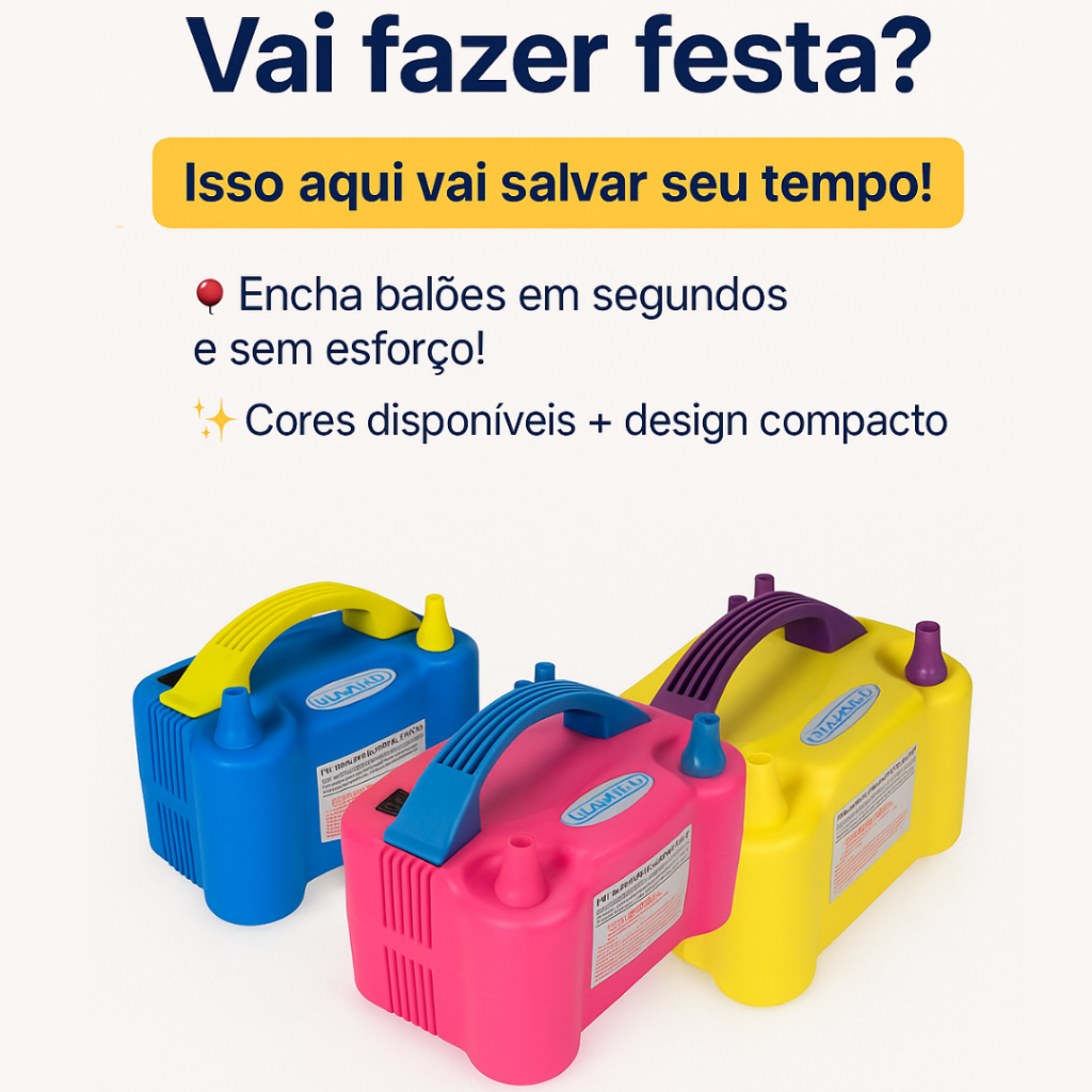 Inflador Compressor Balão Bexiga 2 Bico Festa Aniversário Evento Casamento Decoração Enfeite