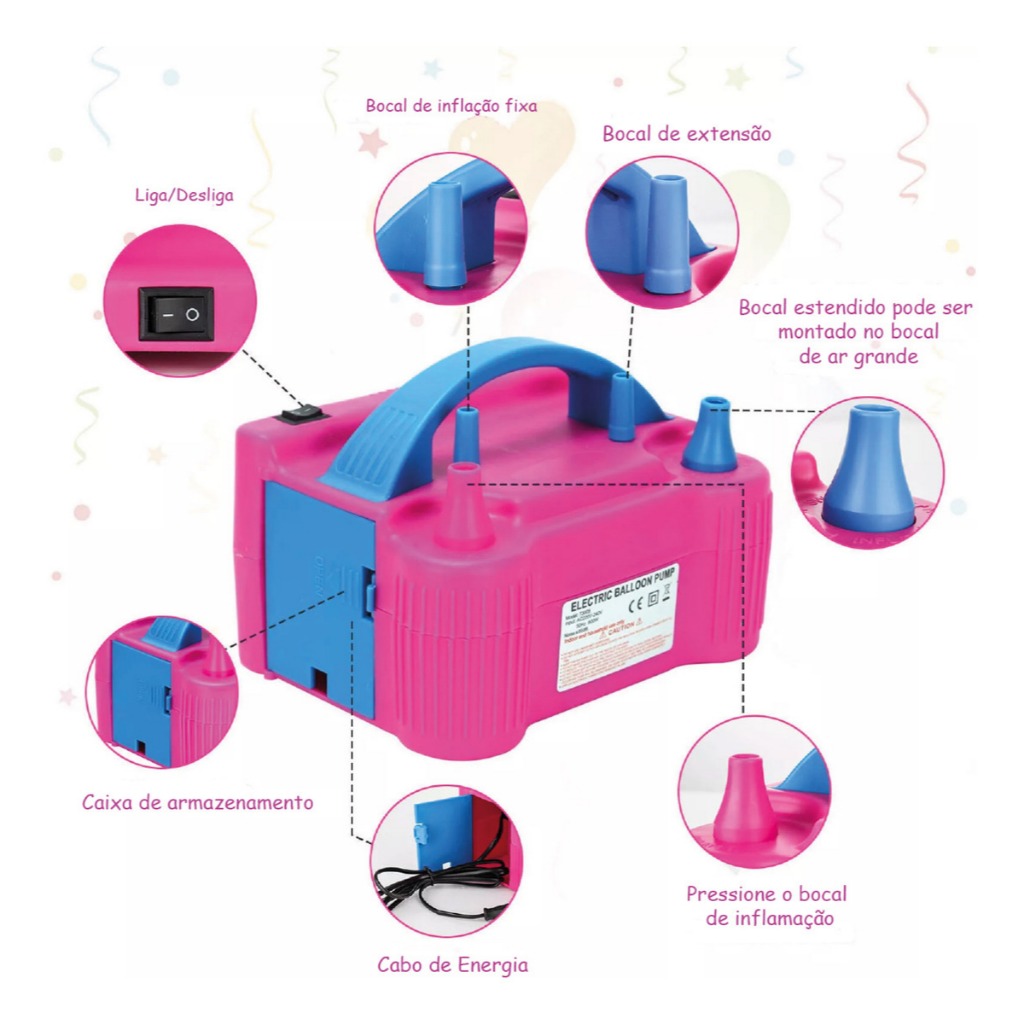Inflador Compressor Elétrico Bomba Encher Balões Bexiga Festa Automático USB 127 220v Pronta Entrega