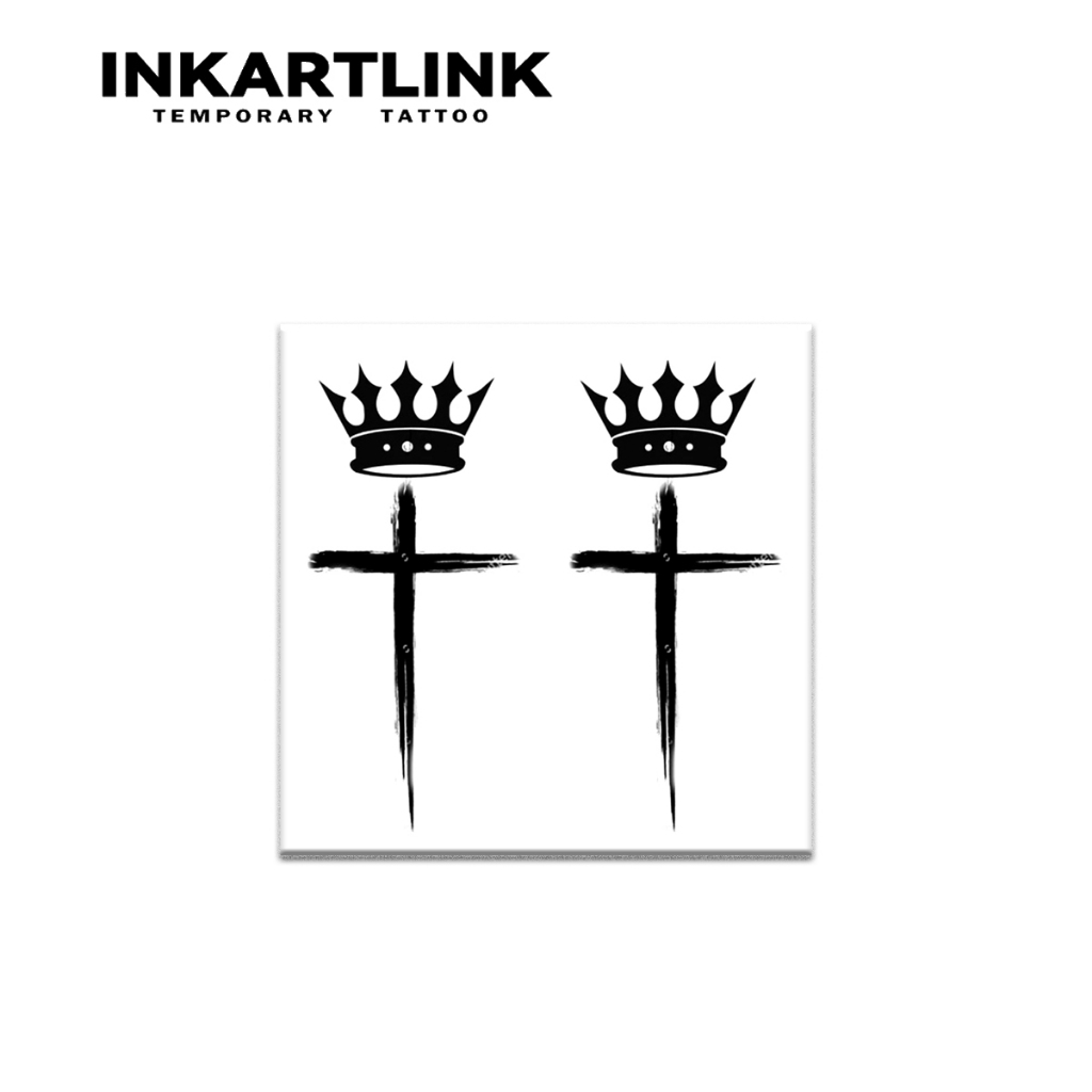 Inkartlink Crown Cross Adesivos De Tatuagem Temporária À Prova D'água Tatuagens Falsas Semipermanentes De Longa Duração