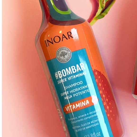 Inoar Bombar Super Vitaminas - Shampoo 1L O shampoo contém D-Pantenol, ingrediente que promove hidratação e brilho de longa duração aos fios e Biotina, conhecida como a vitamina da beleza, ela ajuda no crescimento, fortalecimento e combate à queda. Principais benefícios: - Limpa suavemente - Preserva a hidratação por mais tempo no interior dos fios - Devolve a maciez e o brilho dos fios com a selagem das cutículas - Estimula o crescimento saudável sem quebras e danos Produto vegano. Não testado em animais. Como Usar: Shampoo (low poo): Lave os cabelos com shampoo Bombar. Se necessário, repita a operação. Enxágue totalmente. Resultado: Cabelo muito mais resistente e hidratado, com brilho e maciez todos os dias.