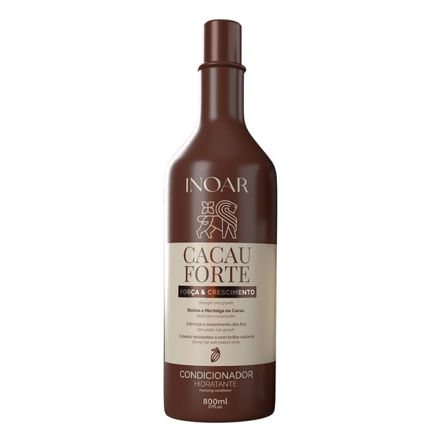 Inoar Cacau Forte Condicionador 800ml Com seus ativos concentrados que auxiliam no crescimento e fortalecimento dos fios, promovem uma rotina completa que proporciona cabelos nutridos, encorpados e radiantes. Sua fórmula enriquecida com Biotina e Manteiga de Cacau, fortalecem a fibra capilar, reduzem a quebra e deixam os fios mais resistentes, hidratados e brilhantes. Com Biotina e Manteiga de cacau. Mais crescimento e mais força com a hidratação intensa do Cacau. Com Biotina e Manteiga de Cacau. PRICIPAIS BENEFÍFIOS: - Estimula o crescimento saudável dos fios; - Fortalece e reconstrói a fibra capilar; - Hidrata e nutre profundamente; - Combate a quebra; - Promove brilho radiante; - Reduz o frizz e melhora a maleabilidade; - Toque sedoso e aparência mais saudável. . Modo de uso: Após o Shampoo aplique o condicionador no comprimento e pontas. Massageie suavemente, deixe agir por 1 minuto e enxágue completamente. Contém: 1-Inoar Cacau Forte Condicionador 800ML