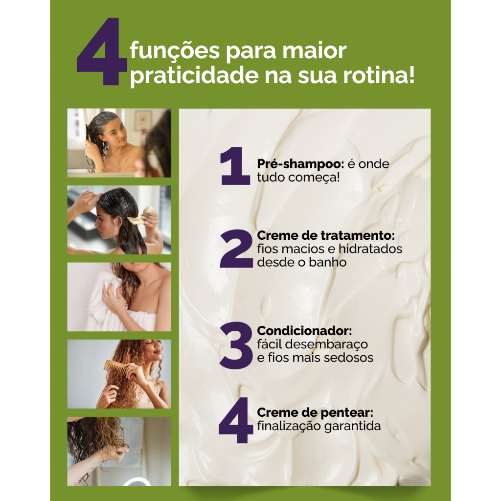Inoar Creme Poder Das Vitaminas Uva 1kg Os Cremes Multifuncionais Inoar unem eficácia, alta performance e ativos poderosos que as consumidoras amam na sua rotina de cuidados. Além disso, oferecem praticidade, durabilidade e versatilidade, com 4 modos de uso em um só pote. Praticidade, tratamento e custo-benefício em um só pote. A Inoar apresenta sua nova coleção de cremes multifuncionais na versão de 1KG. Com fórmulas poderosas que unem hidratação, nutrição e reparação, os cremes Inoar foram desenvolvidos com ingredientes selecionados e tecnologia avançada, podendo ser usados como 4X1: 1.Creme de tratamento; 2. Creme de pentear; 3. Condicionador; 4. Pré-shampoo. Cada versão traz em sua fórmula ativos potentes para transformar os fios, entregando brilho, maciez e maleabilidade incomparáveis. Contém: 1- Inoar Creme Poder Das Vitaminas Uva 1kg