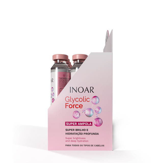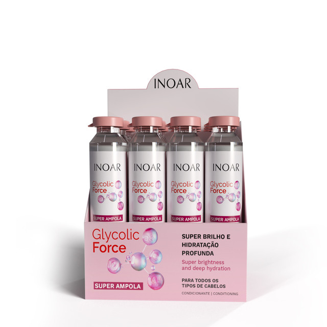 Inoar Glycolic Super Ampola 45ml c/ 12un A Revolução da Inoar para Cabelos Saudáveis e Radiantes. Transforme seus cabelos de forma definitiva com a nova linha Glycolic Force da Inoar. Desenvolvida com uma fórmula inovadora, essa linha é tudo o que você precisa para devolver a vitalidade, o brilho e a hidratação aos fios. Combinando o poder do Ácido Glicólico e a suavidade da Manteiga de Manga, Glycolic Force oferece uma hidratação intensa, deixando seus cabelos macios, com brilho e resultado visível desde a primeira aplicação. E o melhor, é ideal para todos os tipos de cabelo. Contém: 1-Inoar Glycolic Super Ampola 45ml com 12un Vegano, Cruelty Free Modo de usar: Após lavar os cabelos com Shampoo Glycolic Force, aplique a ampola nos cabelos, massageando mecha por mecha. Deixe agir por 3 minutos e enxague.