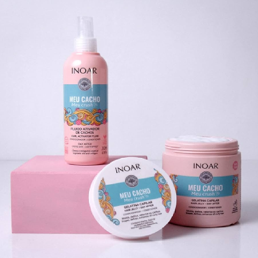 Inoar Meu Cacho Meu Crush Kit 2 Produtos Com óleo de Argan, colágeno e óleos vegetais, o ativador de cachos da linha Meu Cacho, Meu Crush proporciona um efeito instantâneo de ondas para cabelos de todas as curvaturas. Sua fórmula botânica e vegana define os cachos, reduz o frizz e garante fios soltos, leves e macios por mais tempo. Perfeito para o Day After Ação hidratante. Proteção contra umidade Redução de frizz. A VALORIZAÇÃO QUE OS SEUS FIOS MERECEM. Produto 100% Vegano Contém: 1 Inoar Meu Cacho Meu Crush Ativador de Cachos 200ml 1 Inoar Meu Cacho Meu Crush Gelatina 500g