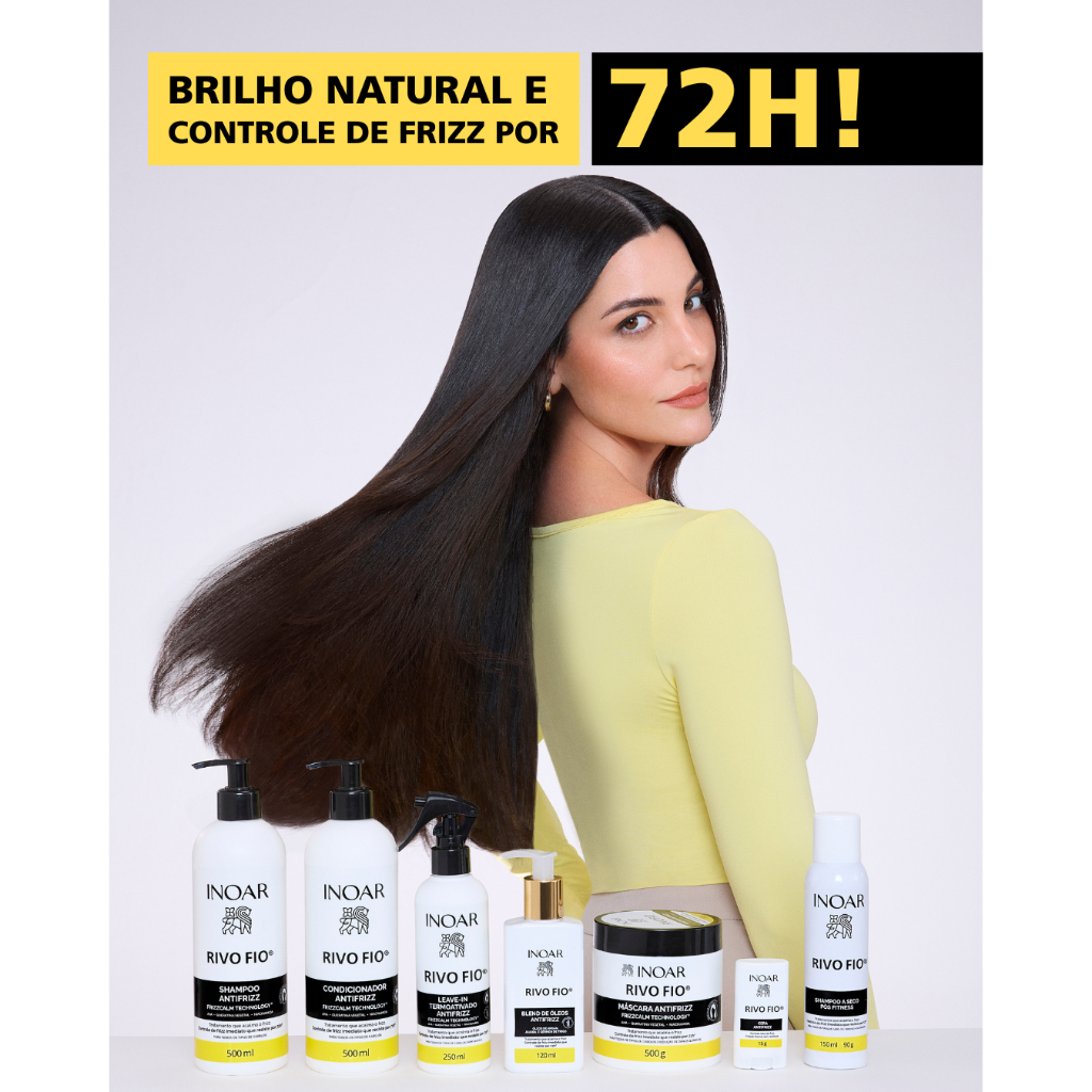 Inoar Rivo Fios Máscara Antifrizz 500g ACALME SEUS FIOS E ATIVE O BRILHO NATURAL DO SEU CABELO. A prescrição perfeita para um lifting capilar impecável. Seu cabelo sem frizz que resiste por até 72h! TECNOLOGIA PARA TODOS OS TIPOS DE CABELOS: Desenvolvida para todas as curvaturas de fios de cabelos, a linha RIVO Fios entrega resultados visíveis desde a primeira aplicação: fios protegidos da umidade, com brilho natural e sem frizz. PRINCÍPIOS ATIVOS: -NIACINAMIDA; -ALFA-HIDROXIÁCIDO [AHA] REDUÇÃO DO FRIZZ; -QUERATINA VEGETAL ALINHAMENTO; -GÉRMEN DE TRIGO FORTALECE E AUXILIA NA SAÚDE CAPILAR. BENEFÍCIOS: -72H RESISTÊNCIA DE CONTROLE DE FRIZZ; -FIOS SEDOSOS; -FÁCIL DESEMBARAÇO; -MENOS DANOS FUTUROS. Contem: 1-Inoar Rivo Fios Máscara Antifrizz 500g