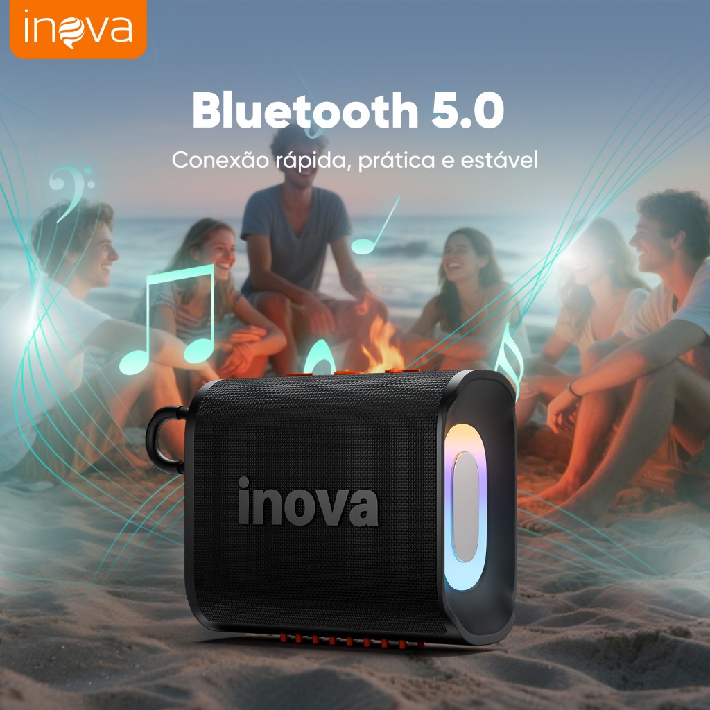 INOVA Caixa De Som Bluetooth Caixinha Som Portátil Potente Tws Com Rádio Rgb Inova Caixinha À Prova D'água Ipx67