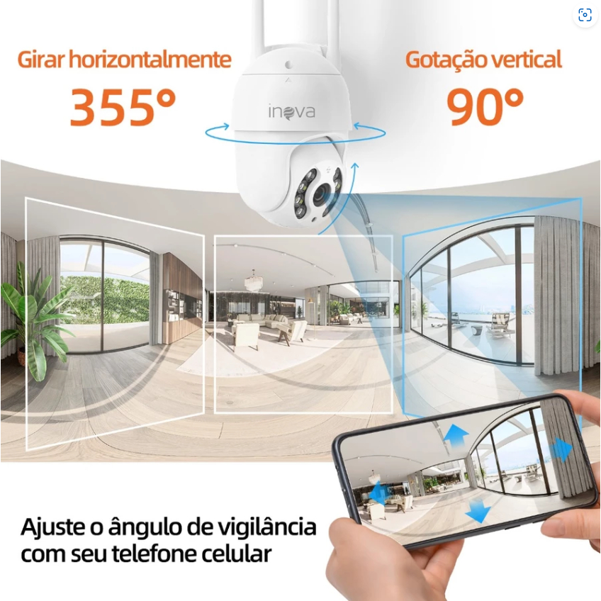 INOVA Câmera de segurança a Prova D'água sem fio gira 360° HD 1080P IP66 APP ICSee e Yoosee 110-220V