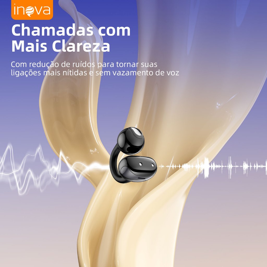 INOVA Fone Bluetooth Clip Ear Sem Fio com Microfone | Cancelamento de Ruído, Esportes e Jogos
