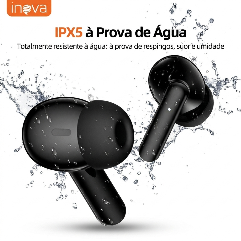 📦 Conteúdo da Embalagem 🎧 1x Par de Fones de Ouvido Inova 🔌 1x Cabo de Carregamento USB 📖 1x Manual de Instruções 🎧 4x Protetores auriculares **Cancelamento de Ruído com AI** A tecnologia de Cancelamento de Ruídos com Inteligência Artificial reduz em 90% os ruídos ambientais, melhorando significativamente a nitidez das suas chamadas. Converse em qualquer lugar com total clareza, sem se preocupar com o barulho à sua volta. **Conforto e Ajuste Perfeito** Confeccionados com materiais de alta qualidade, proporcionam um ajuste ergonómico que se adapta a diferentes formatos de ouvido. Este design inteligente garante 300% mais estabilidade e 200% mais conforto, permitindo que utilize os fones por horas sem incómodo. **Resistente e Durável para o Dia a Dia** Com certificação IPX5, os fones são totalmente resistentes à água, protegendo contra suor, humidade e respingos. São o companheiro ideal para os seus treinos, momentos de lazer ou para o uso diário, sem preocupações. **Bateria de Longa Duração** A bateria de alta performance oferece até 3 horas de música contínua com uma única carga, perfeito para acompanhar a sua rotina e momentos de descontração. **Tecnologia e Conectividade Avançada** Equipados com o moderno chip Bluetooth Dual-Core V5.4, garantem uma conexão estável, de alto desempenho e com latência ultrabaixa. A experiência é perfeita para jogos, filmes e chamadas de vídeo, onde cada milissegundo faz a diferença. A compatibilidade é total com dispositivos iOS e Android, permitindo uma conexão fácil e rápida. **Qualidade Sonora Imersiva** Mergulhe num som de alta qualidade com um detalhamento e nitidez superiores (92% de melhoria na clareza). A tecnologia proporciona 3 vezes mais qualidade sonora, resultando em graves potentes, médios equilibrados e agudos cristalinos para uma experiência auditiva verdadeiramente imersiva.