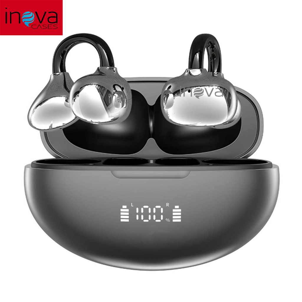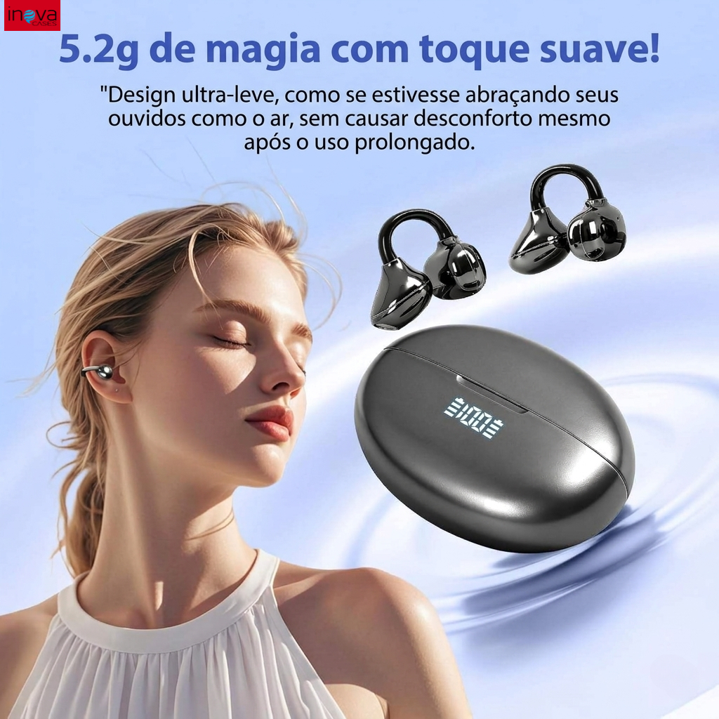 INOVA Fone de Ouvido Bluetooth 6.1 FreeClip Ear Clip-on Som Surround 720°, Display Digital de Bateria, 80h de Espera
