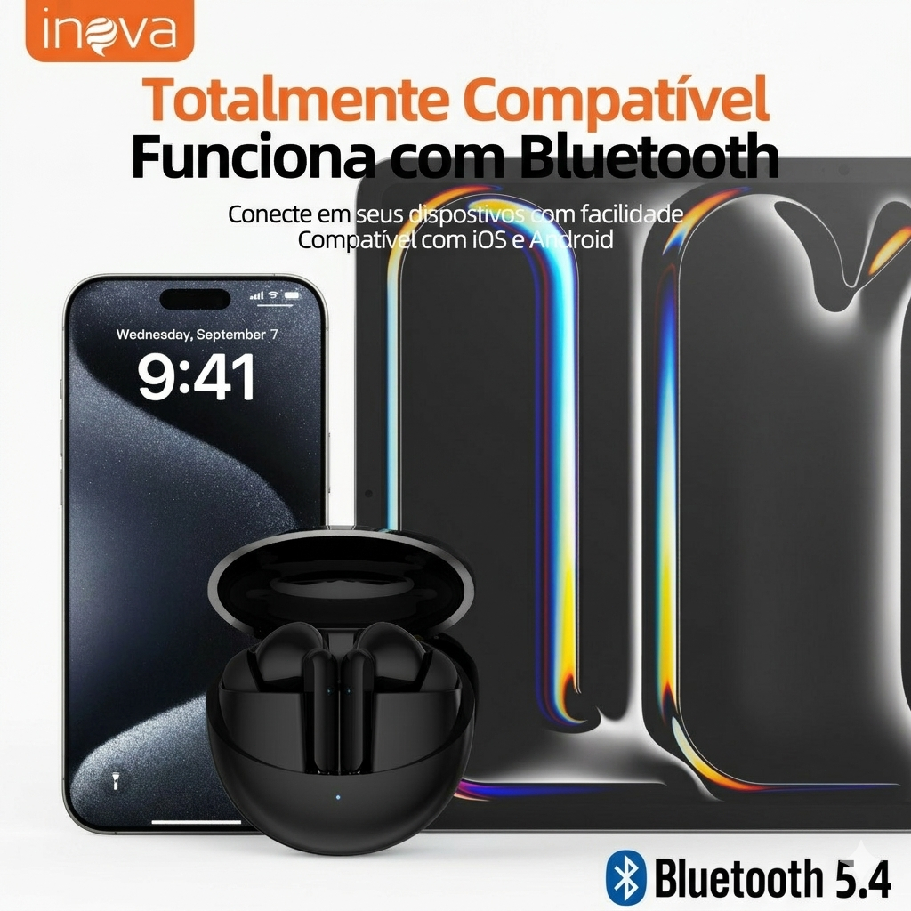 Fones de ouvido sem fio Inova TWS Bluetooth para jogos | Modelo FON-13013 🎧 **Redução de ruído profissional · Bateria de longa duração · Case de recarga multifuncional** --- ### **Por que escolher o Inova TWS?** 🔋 **Bateria que acompanha seu ritmo**: - Até **3-5 horas de uso contínuo** com uma única carga dos fones. - O **case de 200 mAh** recarrega os fones **até 5 vezes**, garantindo **mais de 15 horas no total**. 🎧 **Controle inteligente por toque**: - Um toque: atender / encerrar chamadas. - Dois toques: pular ou voltar música. - Totalmente sem usar as mãos. - Suas chamadas ficam tão nítidas quanto uma conversa presencial. --- ### **Especificações técnicas** - **Bluetooth 5.4** – conexão estável em até 10 metros de distância. Conecta automaticamente ao abrir o case. - **Resposta de frequência:** 50 Hz – 80 kHz (cobre toda a faixa audível pelo ouvido humano). - **Resistência à água:** à prova de suor e respingos de chuva no uso diário (não mergulhar nem usar no banho). - **Compatibilidade:** funciona com qualquer dispositivo Bluetooth – celulares, notebooks, TVs. --- ### **O que vem na caixa** ✓ Fones esquerdo e direito (1 par) ✓ Ponteiras substituíveis (2 pares adicionais) ✓ Case de recarga USB ✓ Cabo USB para carregamento ✓ Manual do usuário --- ### **Perguntas frequentes** ❓ **Quanto tempo duram os fones no volume máximo?** → Em média de 3 a 5 horas. Para maior duração da bateria, recomendamos usar o volume em nível médio. ❓ **Posso nadar com eles?** → Não. São resistentes apenas para o dia a dia (suor e chuva leve). Não mergulhe nem use no banho. ❓ **Como trocar de música?** → Dê dois toques rápidos na área sensível ao toque do fone. Em alguns dispositivos, pode ser necessário ajuste nas configurações. --- 🎯 **Inova TWS: mais que um fone, um aliado para o seu dia a dia**