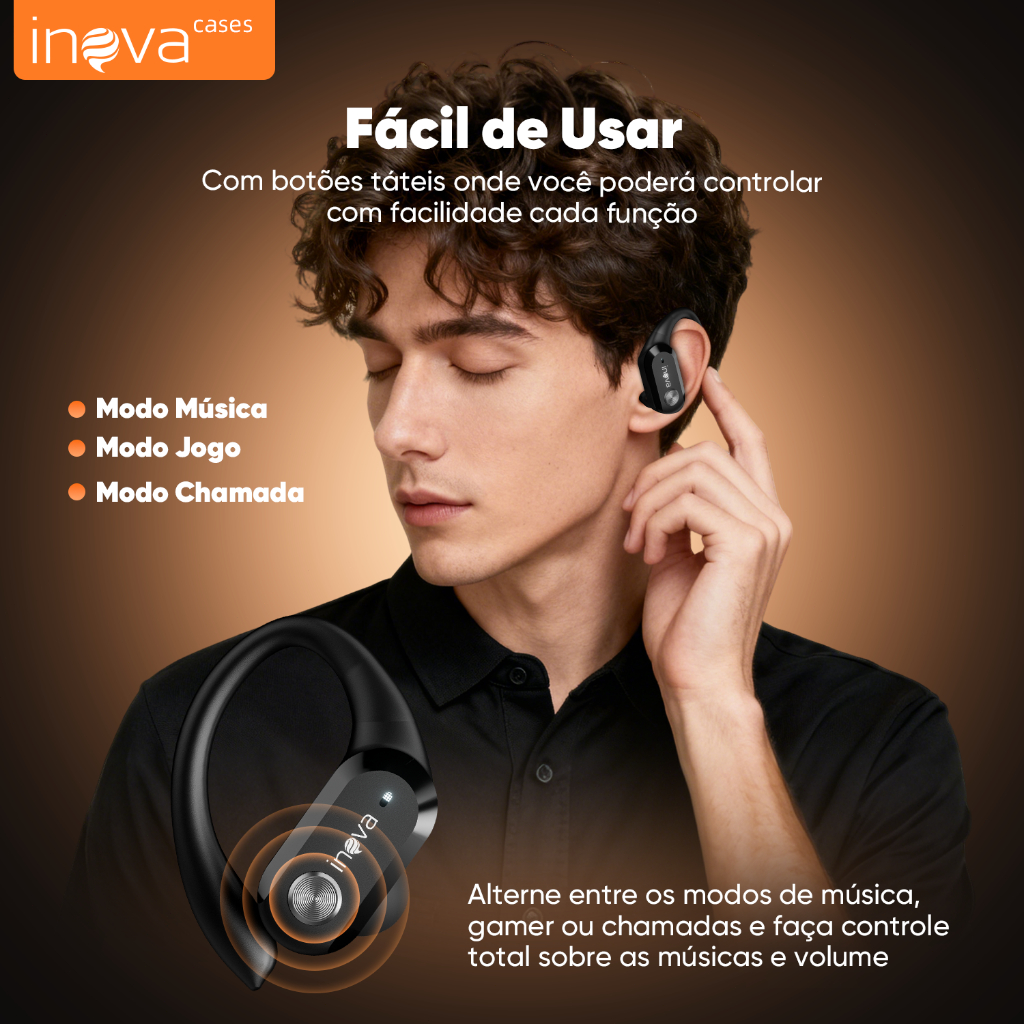 # **Fones de Ouvido Bluetooth INOVA — Conecte-se ao Som, Liberte-se dos Fios** ## **Destaques do Produto** **Design Ergonômico de Gancho para a Orelha** Feito para se ajustar perfeitamente à sua orelha. Leve, confortável e seguro, não cai mesmo durante corridas ou exercícios intensos. **Som Estéreo de Alta Qualidade** Driver de 10mm que oferece graves profundos, agudos claros e vocais nítidos. Experiência sonora imersiva para músicas, podcasts e chamadas. **Bateria de Longa Duração** Bateria de 300mAh que proporciona **mais de 5 horas de reprodução contínua**. Perfeito para o dia todo, sem interrupções. **Bluetooth 5.4 com Conexão Estável** Tecnologia mais recente para conexão rápida, estável e sem atrasos. Alcance de até **10 metros** sem perder o sinal. **Microfone com Cancelamento de Ruído** Fale com clareza mesmo em ambientes barulhentos. Tecnologia de redução de ruído para chamadas profissionais e conversas nítidas. **Resistente à Água (IPX5)** Protegido contra suor e respingos de chuva. Ideal para treinos, corridas e uso no dia a dia sem preocupação. --- ## **Especificações Técnicas** - **Versão Bluetooth:** V5.4 - **Driver:** 10mm - **Alcance Sem Fio:** Até 10m - **Bateria Interna:** 300mAh - **Tempo de Reprodução:** ≥5 horas (a 80% do volume) - **Tempo de Carregamento:** Aprox. 1.5 horas - **Porta de Carregamento:** Tipo-C - **Proteção contra Água:** IPX5 - **Protocolos Suportados:** HSP/HFP/A2DP/AVRCP --- ## **Para Quem É Perfeito?** 🏃 **Para Quem Pratica Esportes** Design seguro que não solta, à prova de suor. A motivação certa para cada treino. 🎧 **Para o Dia a Dia e Deslocamentos** Conforto prolongado para ouvir música no transporte, no trabalho ou em casa. 📞 **Para Reuniões e Chamadas** Microfone claro que permite conversas profissionais, com as mãos livres. ✈️ **Para Viagens e Lazer** Bateria que dura mais, companheiro perfeito para passeios e aventuras. --- ## **O Que Vem na Caixa?** - Fones de Ouvido Bluetooth INOVA ×1 - Cabo de Carregamento Tipo-C ×1 - Manual do Usuário ×1 - Pontas de Silicone Extras (3 pares: P, M, G) --- ## **Por Que Comprar os Fones INOVA?** ✅ **Conforto e Segurança** Feito para se ajustar e não cair, mesmo em movimento. ✅ **Som de Qualidade** Audio equilibrado e rico em detalhes para todas as horas do dia. ✅ **Conexão Estável e Rápida** Pareamento instantâneo e sem cortes, graças ao Bluetooth 5.4. ✅ **Chamadas Nítidas** Nunca mais precise repetir "alô?" em ambientes barulhentos. ✅ **Resistente e Durável** Suor e respingos não são problema. Feito para acompanhar seu ritmo. ✅ **Bateria que Acompanha seu Dia** Carregamento rápido e horas de uso para não deixar você na mão. --- **INOVA — Mais do que fones, seu companheiro diário de som.** **Conforto, clareza e liberdade em cada detalhe.** 🎶 --- 📦 **Frete rápido | Pagamento seguro | Garantia INOVA**