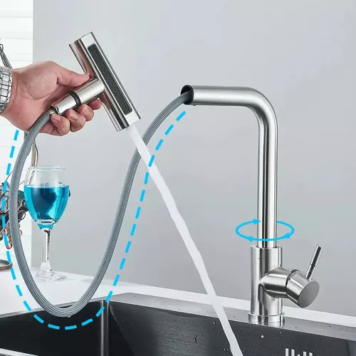INOX 304 Torneira Cozinha Gourmet Misturadora Quente E Fria Rotação de 360 Com Spray Flexível 4modos