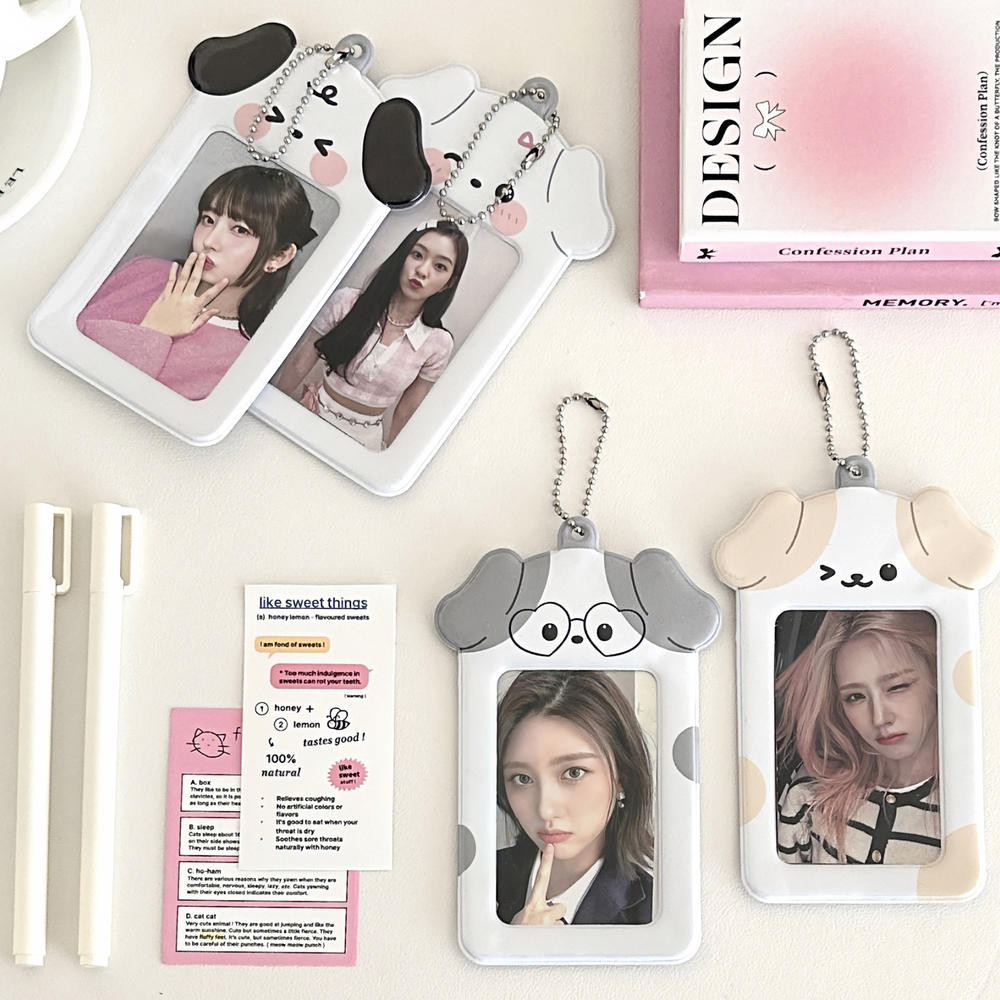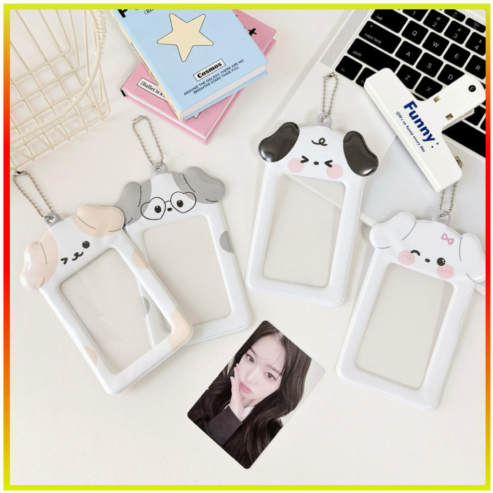 Ins Cartoon Puppy Photocard Holder Com Chaveiros Cartões Fofinhos De 3 Polegadas Protegem Mangas Para Estudantes