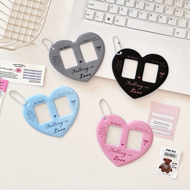 Ins Simples Bonito Duplo Coração Amor 1 Polegada Foto CP Titular Do Cartão Grade Dupla Chaveiro Pingente