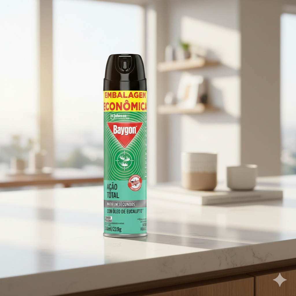 💨 Ação total e rápida Baygon Ação Total Eucalipto 360ml ajuda a eliminar baratas mosquitos pernilongos moscas e formigas deixando sensação de frescor com fragrância de eucalipto ✨ Por que escolher: • Eficaz contra diversos insetos rasteiros e voadores • Jato aerossol que alcança cantos e frestas • Perfume suave de eucalipto para uso no dia a dia • Ideal para casas comércios e ambientes de passagem 🧴 Como usar: • Agite bem antes de aplicar • Feche portas e janelas e pulverize por alguns segundos mantendo o frasco na posição vertical • Direcione para cantos ralos rodapés e áreas de passagem dos insetos • Deixe agir e ventile o ambiente antes de permanecer no local 📦 Conteúdo: • 1 Inseticida Aerossol Baygon Ação Total Eucalipto 360 ml ⚠️ Cuidados e segurança: • Uso doméstico mantenha fora do alcance de crianças e pets • Não pulverizar sobre alimentos utensílios chamas ou superfícies aquecidas • Evitar inalação direta e contato com olhos e pele em caso de irritação suspender o uso • Armazenar em local fresco e ventilado longe do sol e do calor ❓ Perguntas frequentes: • Funciona contra mosquitos sim inclusive pernilongos • Tem cheiro forte fragrância de eucalipto mais suave • Precisa enxaguar superfícies não apenas ventilar após o uso