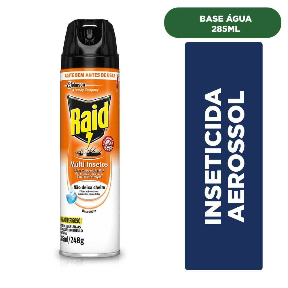 Raid Multi Insetos Base Água possui a eficiência do inseticida com fórmula à base de água que mata a maioria dos insetos comuns, sem deixar cheiro. Mantenha sua casa livre de ilustrações voadoras e rasteiros com Raid.