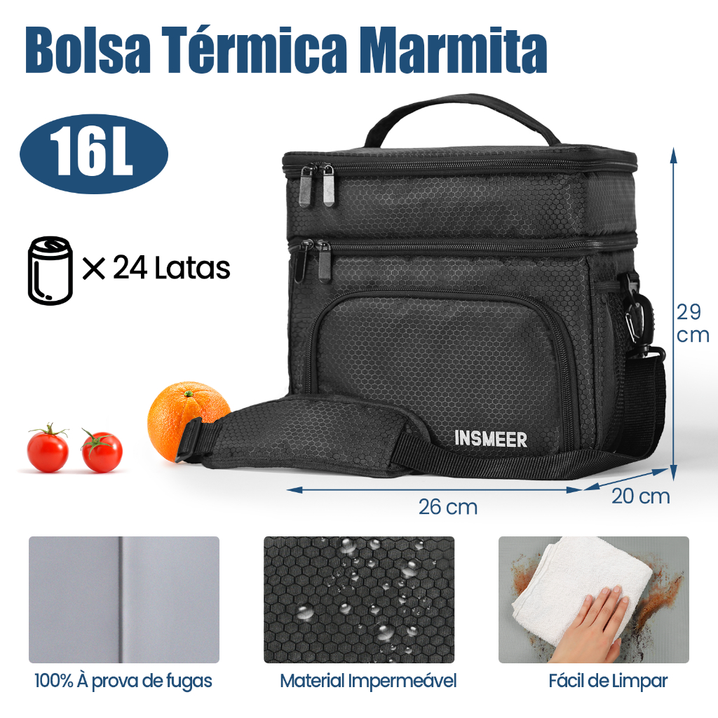 INSMEER Bolsa Termica Lancheira 16L Dupla Camada À Prova De Vazamentos Impermeável com Alça De Ombro