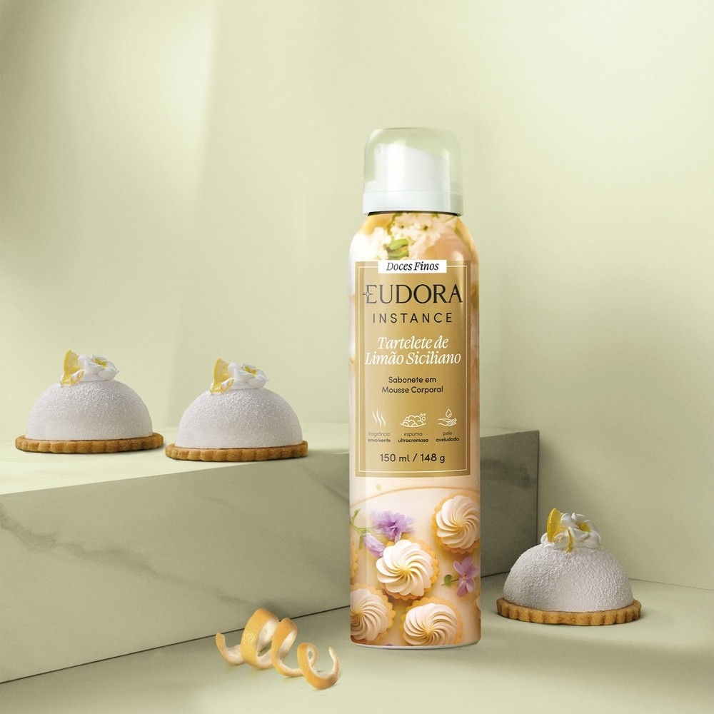 Em edição limitada e co-criada com a confeiteira Beca Milano, o Sabonete Mousse Corporal Eudora Instance Tartelete de Limão Siciliano transforma seu banho em uma experiência luxuosa e sensorial inspirada no universo dos Doces Finos. Sua textura ultra cremosa, livre de parabenos, sulfatos, petrolatos e óleo mineral, limpa suavemente a pele, deixando-a macia, aveludada e com uma sensação de renovação. A fragrância oriental sofisticada une o frescor cítrico do limão siciliano à doçura irresistível do gourmand. Experimente a doçura: -Sensação de pele renovada -Limpeza suave -Espuma ultra cremosa -Explosão de fragrância no banho Nenhum produto Eudora é testado em animais, ou seja, este item possui selo Cruelty Free. **** IMPORTANTE: Não vendemos para contas CNPJ, evite que seu pedido seja cancelado! ****