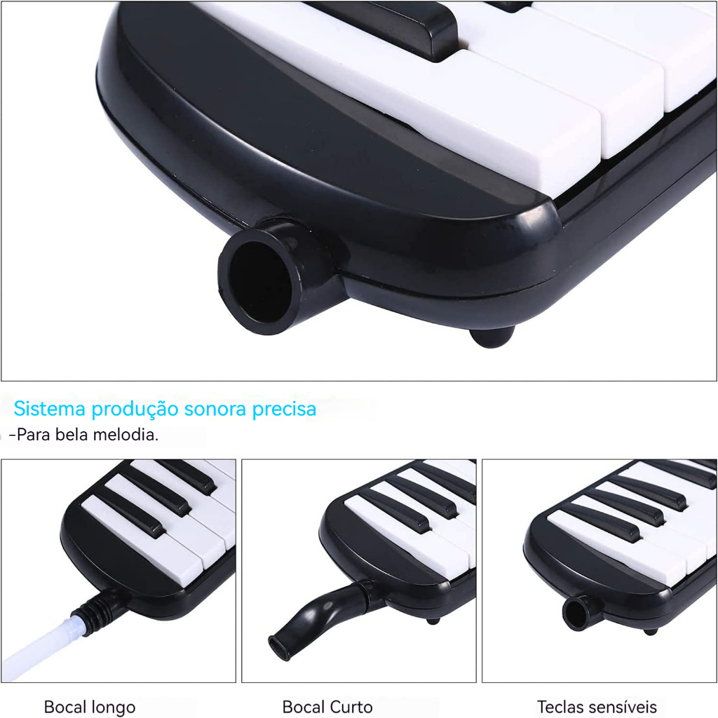 [Fácil de transportar e guardar]: Esta melódica VEDO com 32 teclas vem com uma bolsa de transporte dedicada, oferecendo duas opções de transporte. Você pode segurá-la com a mão ou transportá-la facilmente com uma alça de ombro ajustável, tornando-a perfeita para viagens ou apresentações. Duas opções de reprodução: O pacote inclui dois tubos e dois sopradores, permitindo que você use os sopradores diretamente ou os tubos para uma operação mais flexível. Isso aumenta seu conforto e versatilidade durante o jogo. [Instrumento perfeito para iniciantes]: Com seu design de 32 teclas, esta gaita é fácil de tocar, tornando-a a escolha ideal para iniciantes. Seja você uma criança ou um adulto, este instrumento é perfeito para um aprendizado rápido e uma performance simples. [Materiais de alta qualidade e seguros]: Feita de plástico ABS de engenharia não tóxico, esta gaita garante durabilidade e segurança de longa duração. Você pode desfrutar da diversão de tocar sem se preocupar com riscos à saúde, pois seu design prioriza o seu bem-estar.
