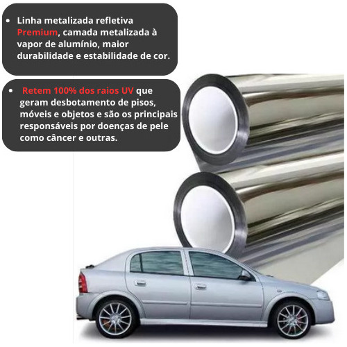 Seja Bem-vindo a Loja NOX Imports. INSULFILM PRATA ESPELHADO, NO QUAL ESPELHA PARA OS DOIS LADOS. ESPELHADO PRATA SMOKE - FUME AO LADO DE DENTRO E ESPELHADO PARA FORA TRANSPARÊNCIA G5 Medida 0,50cm x 10m TRANSPARÊNCIA G5 Medida 0,50cm x 10m PROFISSIONAL COM 5 ANOS DE GARANTIA Insulfilm Espelhado Prata Prata ou Prata Fumê com camada anti-risco. Construída em camadas, adesivo de instalação, camada metalizada através de vapor de alumínio na trama do polyester, adesivo de laminação e camada anti-risco, esse modelo atende às demandas que necessitam de máximo controle de luminosidade e calor, estética elegante e visual moderno. Informações sobre a transparência dos insulfilms: A tonalidade G5, G20 ou G35 servem para informar o quanto a película irá controlar da entrada de luz, G5 deixa passar 5% de luz visível, G20 deixa passar 20% de luz visível, G35 deixa passar 35% de luz visível. A luz representa 49% do calor e gera ofuscamento em excesso e dores de cabeça. Todas as nossas películas retém 100% de radiação ultra violeta A, B e C, principais responsáveis pelo câncer de pele. As películas em imóveis geram conforto e privacidade e preservam móveis e objetos do desbotamento, em automóveis permitem boa estética e segurança, inibindo a visão de pessoas com más intenções. Este material retém 85% de calor - O MAIS EFICIENTE DO MERCADO! Ele trabalha com a reflexão e absorção dos raios solares. PORQUE A NOX VEIO PARA O MARKETPLACE? A película Insulfilm não representa nem 10% dos custos de uma obra ou de uma instalação automotiva, porém, é um material muitas vezes de difícil acesso para compra com qualidade e segurança, somos importadores e distribuidores na maior capital brasileira e vimos a oportunidade nessa ferramenta de levar nossos produtos à todos que precisam e com isso, tornar mais acessível esse benefício estético e saudável para todos. Para facilitar a aplicação, além do nosso vídeo prático no anúncio, enviamos uma cortesia, um treinamento impresso de como instalar o seu insulfilm, você consegue. Recomendamos a aplicação por um profissional.
