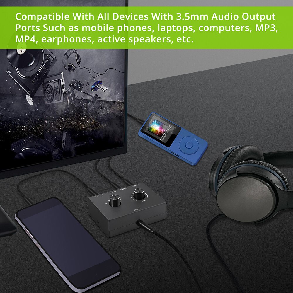 2(1)-in-1(2)-out 3.5mm Interruptor de Áudio Estéreo Interruptor de Áudio Comutador bidirecional para portas de áudio de 3,5 mm. Seletor de áudio de 3,5 mm projetado para clientes com várias fontes de áudio e saídas. Funções principais: Selecione entrada de áudio entre 1 e 2 com interruptor 1/2 e obtenha uma entrada de áudio selecionada entre 1 e 2 com 1/2 e obtenha uma saída; Saída de áudio selecionada entre 1 e 2 para receber uma entrada; Modo de usar: 1 conecte duas fontes de áudio (como CD player / computador) a 1/2 portas e uma saída de áudio (como alto-falantes) à porta IN/OUT; A 2 conecte uma fonte de áudio à porta IN/OUT e duas saídas de áudio a 1/2 portas de áudio conectam uma fonte de áudio à porta IN/OUT e duas saídas de áudio a 1/2. Características: Instalação fácil e operação simples. Só precisa pressionar levemente para mur o dispositivo; muito útil em condições especiais. Plug and play; Sem necessidade de fonte de alimentação e outros softwares; Não afetará a qualidade do som. Suporte máximo de sinal analógico suporte máximo 2V p-p entrada e saída. Faixa de frequência de entrada e saída de entrada e saída: 20Hz ~ 20KHz. Use cabo de áudio padrão, distância de transmissão de entrada de até 8 metros, distância de transmissão de saída de até 8 metros. Tamanho super pequeno; Tamanho compacto e super mini; Fácil de colocar e adequado para sua área de trabalho e escritório. O pacote contém: Interruptor de interruptor de áudio de 3,5 mm Cabo de áudio de 1*3,5 mm Manual do usuário 1* manual do usuário Nota: Somente fones de ouvido de três segmentos são suportados (apenas fones de ouvido de três segmentos são suportados (os fones de ouvido de quatro segmentos não são suportados) Apenas uma entrada pode ser jogada de cada vez.