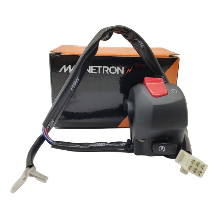Interruptor de partida e emergência Fabricante: Magnetron Aplicação: Compatível com Yamaha Fazer YS 250 250 2005 a 2010 Compatível com Yamaha Fazer YS 250 LE 2008 a 2010 Descrição: O interruptor tem a função de informar o acionamento da buzina, embreagem, farol, freios, cavaletes, neutro, partida e pisca. Código da fabricante: 90235630 EAN: 7898508616396
