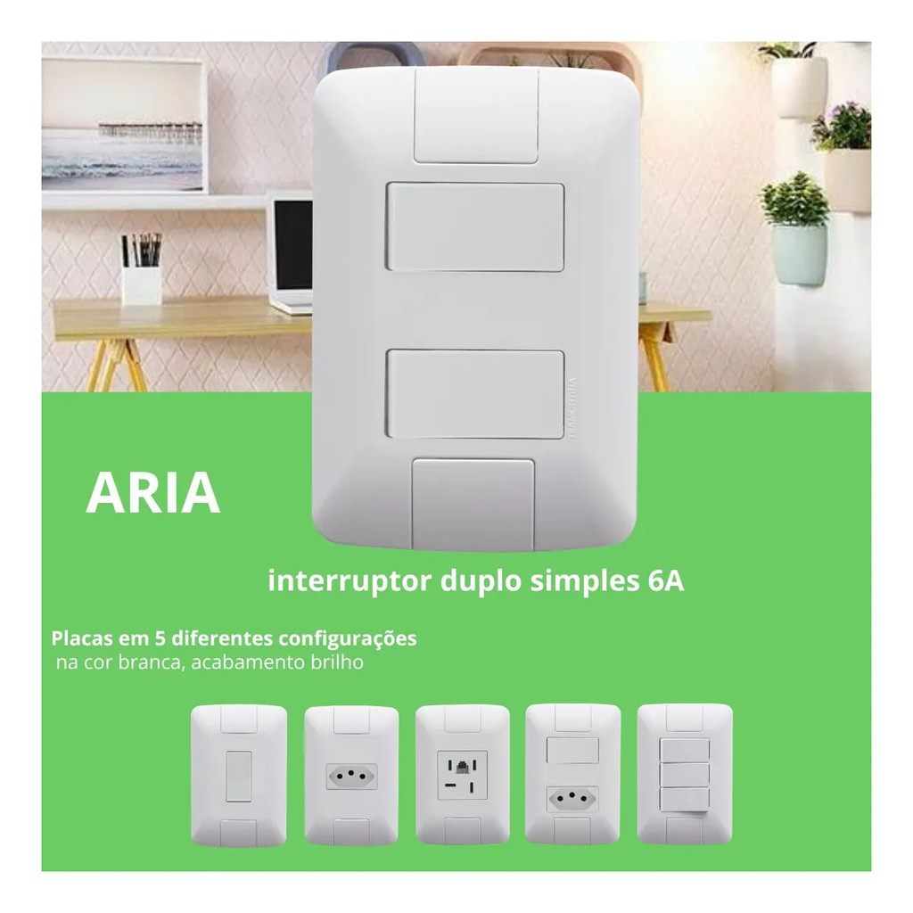 Interruptor Duplo Tecla Simples 6A Branco Aria Tramontina