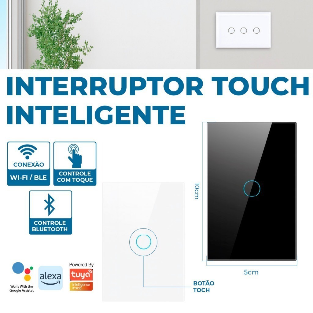 Interruptor Inteligente de Toque Wifi Com 1 Botão Controle por Aplicativo Alexa Tuya e Google