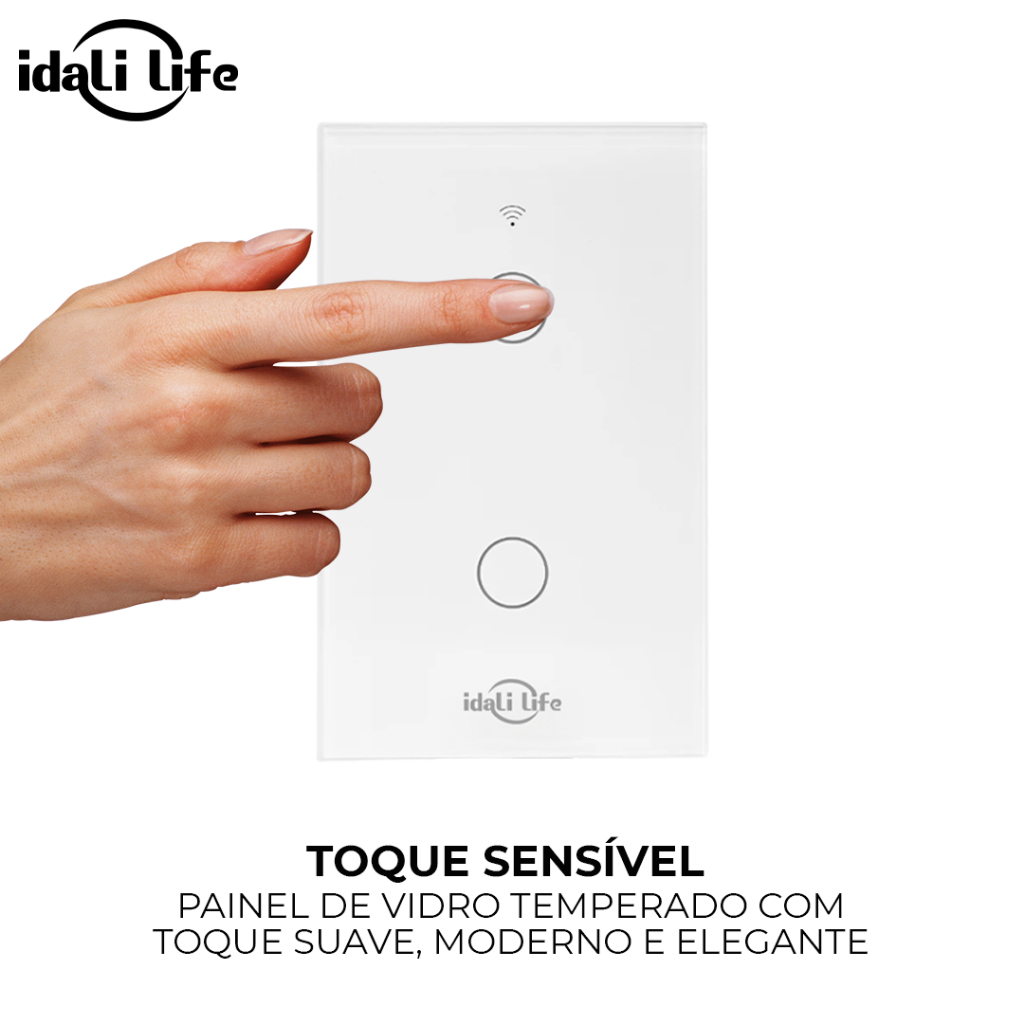 Interruptor Inteligente Smart Wi-Fi 2 Botões Touch Idali Life Modernize sua casa com o Interruptor Inteligente Idali Life, que une design sofisticado e tecnologia avançada para oferecer controle total da iluminação via aplicativo. Com agendamentos personalizados e integração com assistentes de voz, é ideal para quem busca automação, praticidade e segurança no dia a dia. Principais Funcionalidades: - Wi-Fi Estável 2.4GHz: Compatível com redes 802.11 b/g/n - Conexão Wi-Fi + BLE: Maior estabilidade e emparelhamento rápido - Controle Remoto: Acione e monitore pelo app DAFU LIFE (iOS e Android) - Agendamento Inteligente: Programe horários para ligar e desligar automaticamente - Cenas Personalizadas: Crie ambientes conforme sua rotina ou humor - Controle Múltiplo: Compartilhe o dispositivo com outros membros da casa - Resistente à Água: Maior durabilidade e segurança - Compatível com Alexa e Google Home: Controle por comandos de voz - Instalação com Neutro e Fase (N+L): Mais estabilidade e segurança Especificações Técnicas: Material: Painel de vidro temperado + corpo em PC V0 antichamas Carga Máxima: 600W por gângue (1 a 4 gângues) Voltagem: Bivolt (100–240 V, 50/60 Hz) Corrente Máxima: 10A Consumo em Standby: Menor que 0,5W Dimensões: 118 x 72 x 35 mm (L x A x P) Sistema Compatível: iOS / Android Aplicativo: DAFU LIFE Transforme sua casa com mais tecnologia, conforto e segurança com o Interruptor Inteligente Idali Life. Ideal para residências, escritórios ou espaços modernos que exigem controle e praticidade na palma da mão. Instalação: - Desligue a energia no disjuntor. - Remova o interruptor antigo, retirando o espelho e os parafusos. - Identifique os fios: Fase (L), Neutro (N) e os fios da lâmpada. Conecte os fios no novo interruptor: - Fase no terminal “L” - Neutro no terminal “N” (obrigatório) - Fio da lâmpada no terminal do botão correspondente - Fixe o interruptor na parede e coloque o painel de vidro. - Ligue o disjuntor. - No app DAFU LIFE, conecte à rede Wi-Fi 2.4GHz e faça o emparelhamento. Itens Inclusos no Pacote: 1x Interruptor inteligente 1x Painel de vidro temperado 2x Parafusos para fixação 1x Manual de instalação Fabricante: Idali Life País de Origem: China
