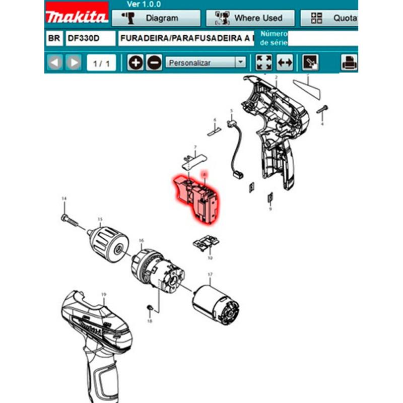 Interruptor para Parafusadeira DF330D Bivolt 650699-7 MAKITA