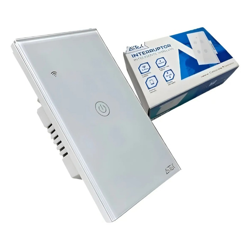 Interruptor Touch Uma solução simples, prática e de ótimo custo-benefício para controlar remotamente lâmpadas e alguns equipamentos domésticos. Para tornar o seu dia a dia mais versátil, programar o melhor horário para ligar automaticamente toda a sua iluminação, além de um design elegante com vidro temperado. Interruptor Inteligente: - Elegante e moderno, design em vidro temperado Touch. - Pode controlar a iluminação de sua residência através de um smartphone/tablet ou pela sua Assistente Virtual (Google ou Alexa) utilizando somente o Wi-Fi! - Pode ser ativado através de comando de voz (Alexa ou Google Home). - Função Timer: Programe horários para que as luzes acendam e apaguem automaticamente através do aplicativo. - Nao acompanha capacitor - Plataforma Tuya-Smart life ou AITEK Tem possibilidade de colocar um paralelo? - Tem sim Como funciona o interruptor em caso de queda do wifi? ele segue funcionando através do touch? - Sim, o botão funciona sempre. A única coisa que vai deixar de funcionar é o App pois precisa de WIFI. Pega quantas lâmpadas? - Comanda 1 lâmpadas é Bivolt? - Sim, é Bivolt Quantos Watts? - 1200W - Compatível Com O Padrão Br 4x2. ESPECIFICAÇÕES TECNICAS Marca: Aitek Tensão Entrada: 100-240V AC 50/60Hz Corrente máxima: 10A Potência máxima: 1200 W Wi-Fi: 2,4 GHz Radiofrequência: 433 MHz Dimensões: 120 x 74 x 38 mm Material: Plástico ABS e Vidro Botões: 1 Cor: Branco, Preto ITENS 1x Interruptor Touch Wi-Fi 1x manual 2x parafusos
