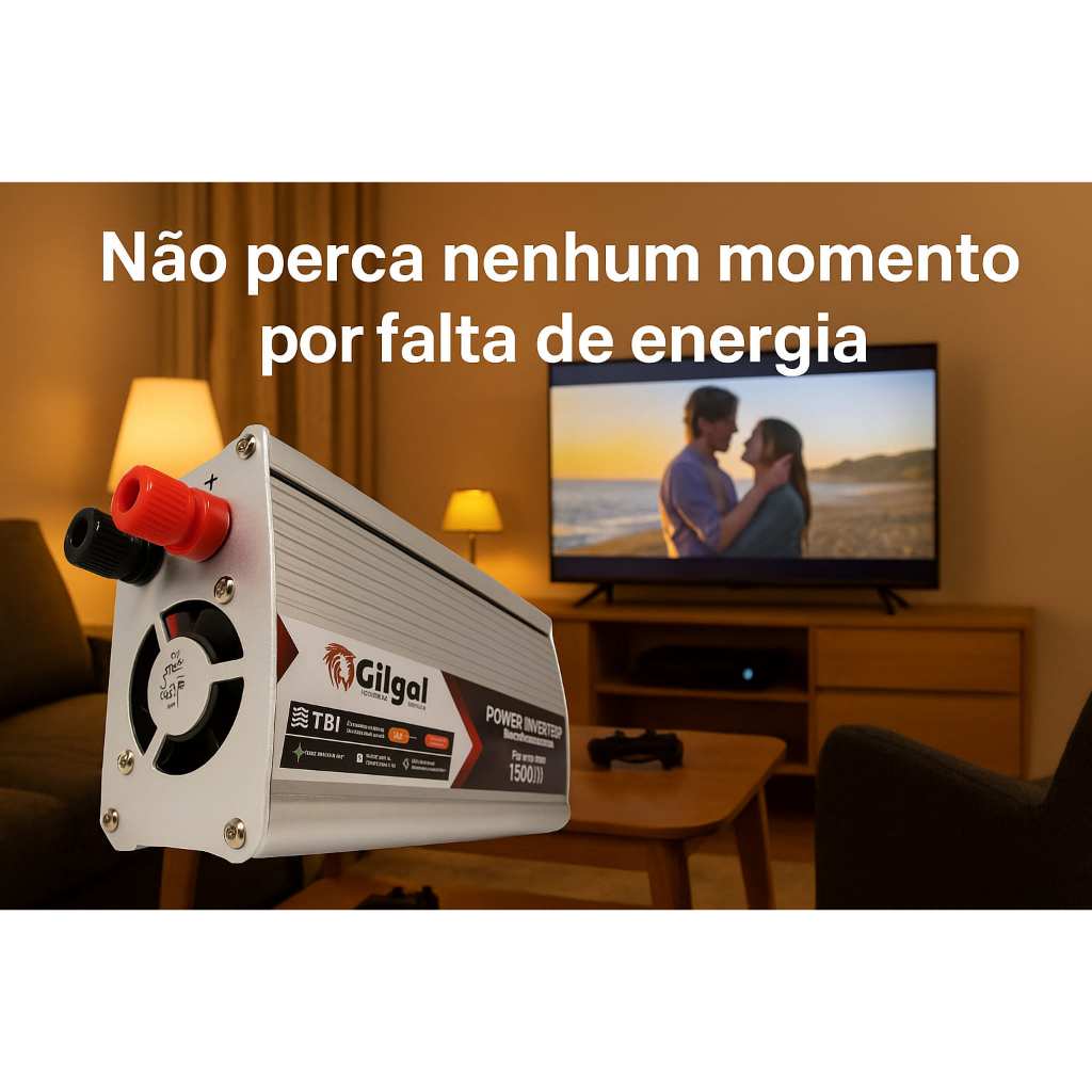 Inversor 1500W 12V para 220V Onda Modificada Solar p/ Motorhome, Off Grid, Energia Remota, Camping