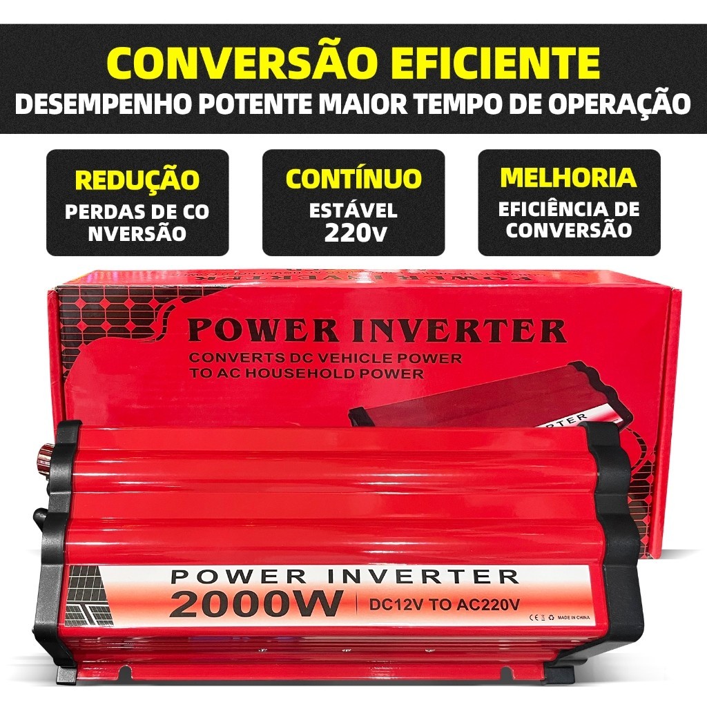 Inversor de Potência 2000W DC 12V para AC 220V Conversor de Energia para Eletrodomésticos e Veículos