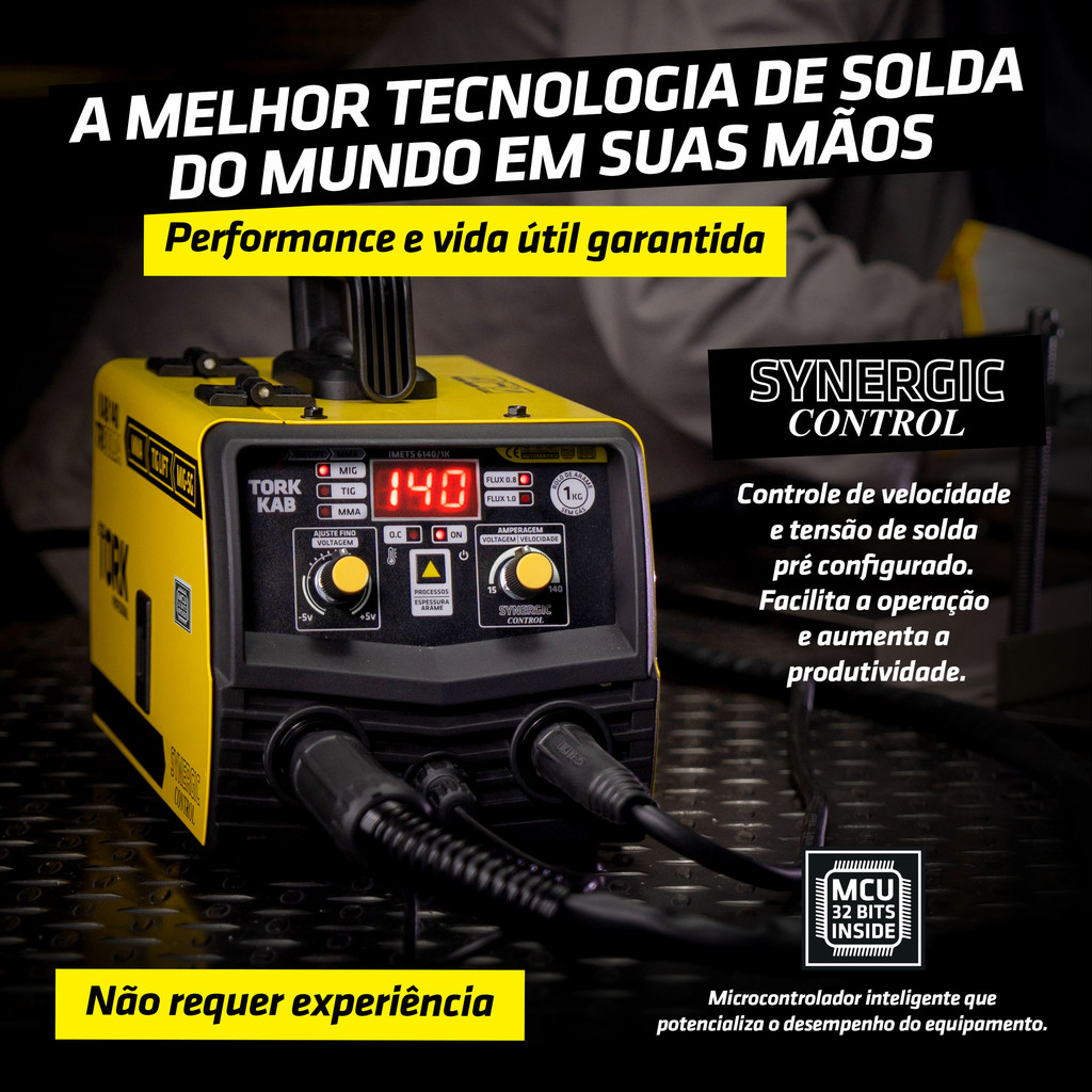 MAQUINA DE SOLDA MIG 140A SEM GÁS TRISOLDA TIG LIFT ELETRODO O inversor de solda IMETS 6140/1K 220V Super Tork Profissional foi projetado com intuito de modernizar e facilitar os trabalhos de solda. Produto combinado 3X1, a fonte de solda tem a capacidade de realizar 3 processos de soldagem como MIG SEM GÁS, TIG-LIFT e MMA. Para o processo MIG é possível soldar sem gás, com a sinergia eletrônica facilita a operação do equipamento, mesmo sem experiência é fácil de soldar e com a inovadora Tocha Nine-Conector de engate rápido e plug duas vias é simples a conexão e leve e resistente para aplicação da soldagem, a fonte tem capacidade de suportar rolos de 1 kg de arame. Com placa eletrônica construída em base SMD (montagem robótica) e inserção de componentes de alta qualidade, a fonte de solda possui longa vida útil e baixo nível de manutenções. Com tecnologia IGBT aplicada em seu bloco de potência, a fonte de solda proporciona uma potente corrente de solda e baixo consumo de energia elétrica. Em sua construção eletrônica, dispositivos térmicos de proteção e cooler de alta capacidade de refrigeração aumentam seu ciclo de trabalho, segurança e produtividade em conjunto. Seu inversor possui 02 (DOIS) anos de garantia contra vícios de fabricação, sendo 9 de meses garantia contratual + 3 meses de garantia legal + 12 meses de garantia adicional. Basta fazer o preenchimento do formulário no site, você ganhará 12 meses adicionais à garantia contratual! Este é o resultado da evolução técnica e da qualidade de nossos equipamentos. Os inversores SUPER TORK foram projetados para tornar o seu trabalho mais rápido e fácil. As prioridades ao projetar esta máquina foram para facilitar a operação e manutenção, além de oferecer segurança, conforto e confiabilidade. RECURSOS DO INVERSOR CIMETS-6140/1K 220V: • Processo MIG SEM GÁS (Alta produtividade e facilidade de operação); • Processo TIG-LIFT (Possibilita a solda de chapas finas e proporciona melhor acabamento) tocha não inclusa; • Processo MMA Eletrodo Revestido; • Função MIG - Sinergia Eletrônica MIG (Regulagem automática de velocidade e tensão de solda MIG); • Função MIG - Seleção de diâmetro do arame; • Função MIG - Ajuste fino de tensão/voltagem MIG (Possibilita a soldagem em chapas finas com precisão); • Função MIG - Capacidade de rolo de arame de 1kg; • Função MMA - Solda todos os tipos de eletrodos, tais como: E6013, E7018, alumínio, inox e ferro fundido; • Função MMA - HOT-START AUTOMÁTICO (Facilidade de abertura de arco elétrico com vários tipos e diâmetros de eletrodos); • Função MMA - ARC-FORCE AUTOMÁTICO (Controle de estabilidade de arco inteligente, mantêm o arco balanceado com corrente + tensão); • Função MMA - ANTI-STICKING AUTOMÁTICO (Não cola o eletrodo na peça de trabalho, aferição rápida e reposta imediata ao curto); • Alta capacidade de solda e ótimo ciclo de trabalho; • Turbo ventilada (alta eficiência de refrigeração); • OVER CURRENT O.C – Proteção contra sobreaquecimento e sobretensão automática que protege a fonte de solda; • Tecnologia IGBT - proporciona uma potente corrente de solda e juntamente um baixo consumo de energia elétrica. Trazendo mais benéficos e economia; • MCU 32 BITS - Processador mais software tecnologia que melhora a performance e facilita o uso do equipamento. • Indicador de proteção térmica (Segurança e inteligência); • Display Digital (Facilidade e precisão de ajuste); • Com alça de transporte (Leve e portátil, de fácil locomoção); • Acessórios: Tocha Mig Nine conector, Porta eletrodo, Garra do terra e Roldana de tração Recartilhada "K" 0.8/1.0; • Acompanha Manual de instruções e Guia rápido DADOS TÉCNICOS – CIMETS 6140/1K 220V Ligação: Tomada (20A) Frequência: 50/60Hz Voltagem: 220v Corrente de entrada máxima: 21A Corrente de entrada eficiente: 16.2A Potência: 4.620W Tensão no Vazio: 65V Amperagem mínima: 15A Amperagem máxima: 140A Capacidade do alimentador (kg): 1kg Conector: 9mm + plug 2 vias Dimensões: 310 x 160 x 180mm Peso: 3,800 kg Hot Start: Automático Arc Force: Automático Anti Stick: Automático Quais materiais conseguimos soldar com este equipamento? MMA – ELETRODOS REVESTIDOS: Aço Carbono, Aço Inox, Ferro Fundido, Alumínio, Metalon, Perfil Metálico, Chapas Automotivas, Carrocerias, Estruturas metálicas entre outros materiais ferrosos! TIG DC: Aço Carbono, Aço Inox, Ferro Fundido, Metalon, Perfil Metálico, Chapas Automotivas, Carrocerias, Estruturas metálicas entre outros materiais ferrosos! MIG SEM GÁS: Aço Carbono, Metalon, Perfil Metálico, Chapas Automotivas, Carrocerias, Estruturas metálicas entre outros materiais ferrosos! Qual a vantagem de soldar com o processo MMA eletrodo revestido? O eletrodo revestido é considerado o processo mais versátil, pois solda qualquer material. São facilmente encontrados no mercado, possuem um valor acessível e não requer habilidades avançadas em soldagem. No processo MMA – ELETRODO REVESTIDO o único consumível é o próprio eletrodo. Qual a vantagem de soldar com o processo M